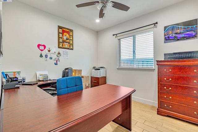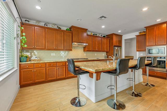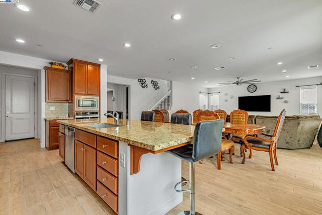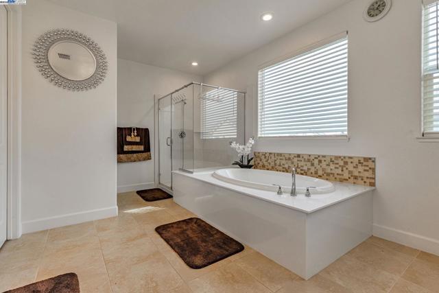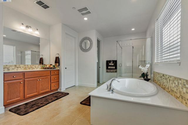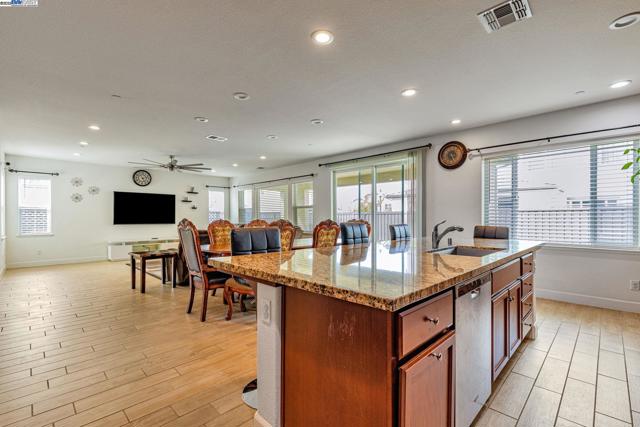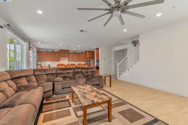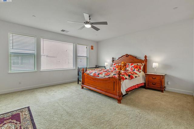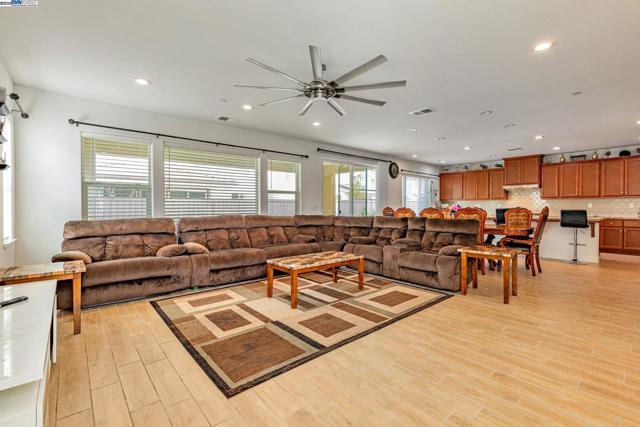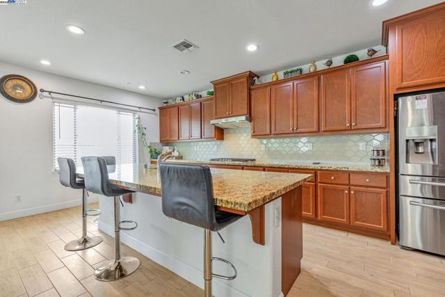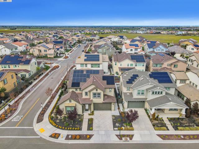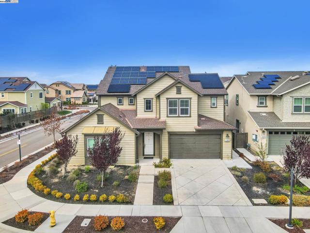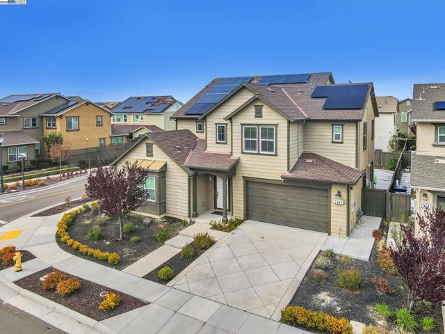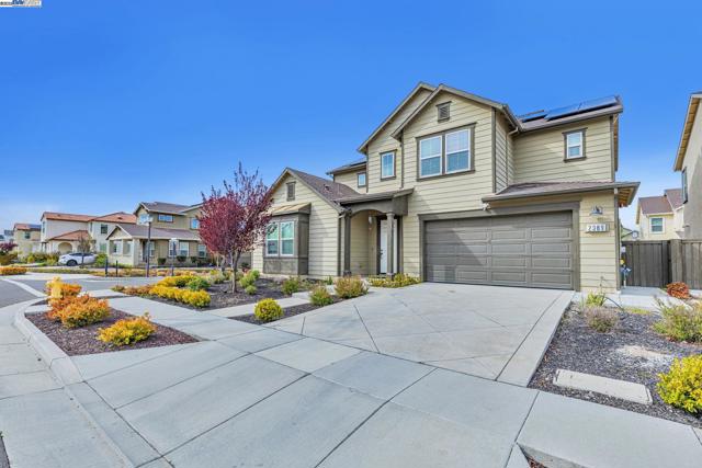 Welcome to this stunning corner lot home nestled in the charming Ellis Town community of Tracy. This spacious residence features 5 bedrooms and 3.5 bathrooms, including a private downstairs bedroom and bath. Large windows provide ample natural light throughout the home. Upstairs, you'll find a spacious loft, 2 additional bedrooms, and a grand master suite complete with a walk-in closet, tub, and shower. The property offers plenty of parking for visiting family and friends on the side and front streets. Inside, you'll discover numerous upgrades, including a kitchen equipped with stainless steel appliances, a spacious pantry, and a large island adorned with granite countertops. The open layout encompasses a generous great room and kitchen, making it ideal for entertaining or family gatherings. The beautifully landscaped front yard enhances the home's curb appeal, while the spacious backyard, featuring a California room, is perfect for family get-togethers. The community boasts several parks, including a dog park, and is conveniently located with easy access to freeways and the ACE train.
