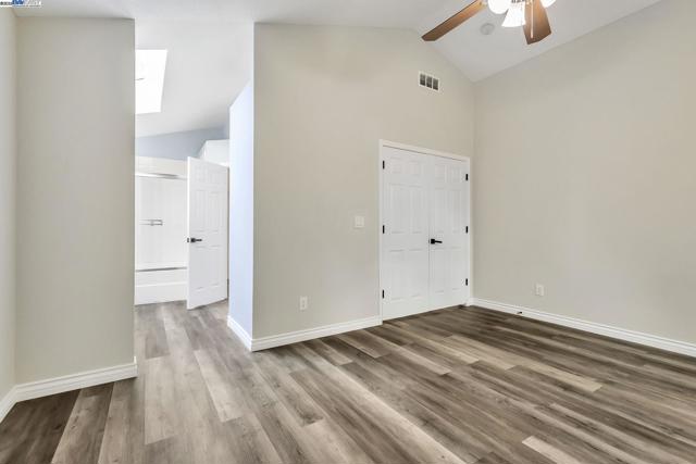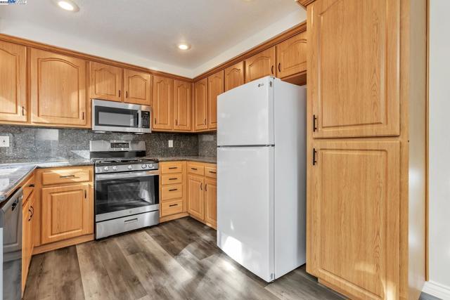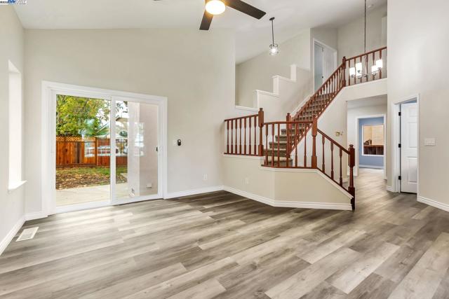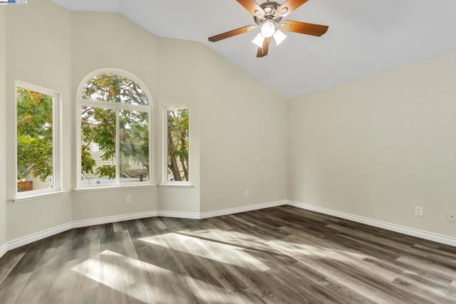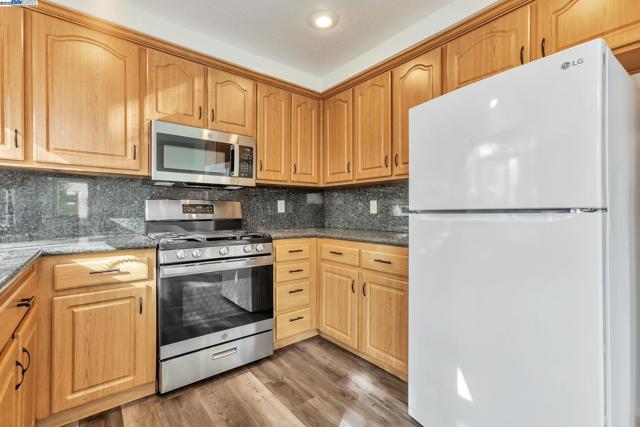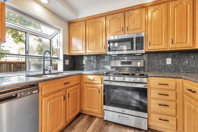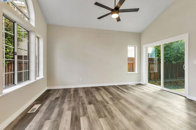 Approximately 1,714 square feet, this four bedroom, two and one-half bathroom home offers an open and inviting layout with abundant natural light throughout. The primary bedroom features walk-in closet and an en-suite remodeled bathroom with stone counter top and skylight . The additional three bedrooms provide versatile living options. This home showcases hardwood-style flooring and large windows, creating a bright and airy ambiance. The kitchen is equipped with stainless steel appliances, ample cabinetry, and granite countertops, ideal for the home cook. The spacious yard is complemented by mature trees, offering a private and serene outdoor oasis. This home is nestled on a quiet court close to a neighborhood park, just one block from an elementary school, and conveniently located near downtown restaurants and local boutiques, including a Saturday farmer's market.