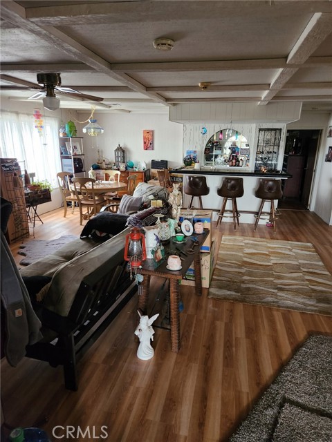 Welcome Home to Santiago Desert View Estates! This spacious triple-wide manufactured home offers over 2,000 square feet of comfortable living space with 2 bedrooms and 2 bathrooms. Step inside to find a bright, open floor plan featuring a large living room with a built-in bar—perfect for entertaining guests or relaxing after a long day. The updated kitchen has been beautifully redone by the seller and includes a built-in breakfast bar that opens to the dining area, ideal for casual meals and gatherings. A generous den floods with natural light, creating a warm and inviting space for reading, hobbies, or an additional sitting area. Each bedroom offers spacious closets with built-in storage, giving you plenty of room to stay organized. Enjoy the screened-in front porch, perfect for sipping coffee in the morning or unwinding on cool summer evenings. The home also features an indoor laundry room for added convenience and new flooring throughout for a fresh, modern touch. Located in the desirable Santiago Desert View Estates, this home combines comfort, charm, and space—all in a welcoming community setting.