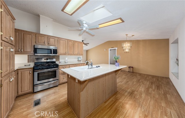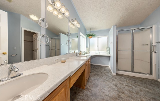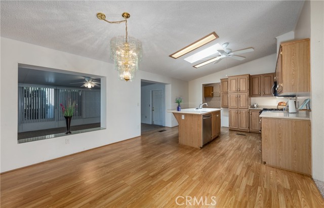 This 3 bedroom/2 bathroom home located in the desired senior gated community of Foothills of Hemet also has a permitted room off of the kitchen so there's lots of square footage. Large living room w/high ceilings opens up to the dining area and kitchen that has an island lots of cabinets & newer appliances. Primary bedroom is on one side of the home providing lots of privacy. The light & bright bathroom has double sinks, soaking tub & separate shower. Walk-in closet can be accessed from either the bedroom or the bathroom. The two guest bedrooms & a bathroom are at the other end. From the large additional room that would be be great for entertaining. From there you have direct access to the two-car garage and also the nice little covered patio. The park is clean, quiet, gated and just plain awesome with amenities including 2 swimming pools, spa, pickleball courts, air-conditioned shuffle board court, exercise room, recreation hall w/kitchen, and rooms to enjoy billiards, cards, bingo, crafts & fun planned dinners or activities. Ask about the park's RV parking area. Commuter friendly, and close to shopping & restaurants.