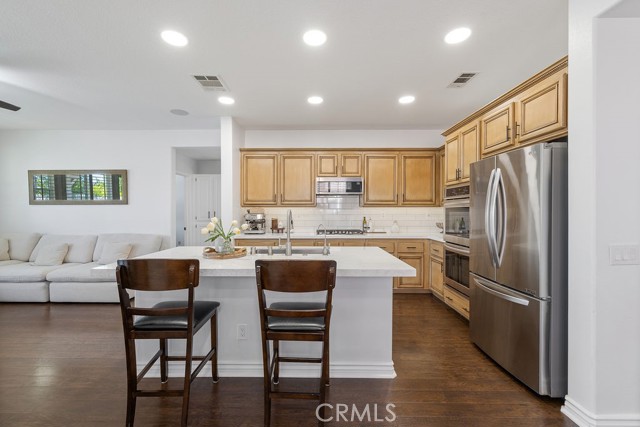 Back on the Market, Buyer Couldn’t Perform! Their loss is your opportunity to own this spacious and beautifully maintained 5 bedroom, 3 bathroom home in a highly desirable Santa Clarita neighborhood with NO HOA and NO MELLO ROOS. Priced below market value this is your chance to purchase a home with built in equity. With approximately 2,800 sq. ft. of living space this home offers a well designed layout ideal for both everyday living and entertaining. Upon entering you are greeted by high ceilings and a stunning accent wall that sets the tone for the entire home. Just off the entryway is a custom built bar area perfect for relaxing or entertaining guests. The main level features a bedroom and full bathroom ideal for guests, in laws, or multigenerational living. The open concept kitchen offers a large center island making it a natural gathering spot for family and friends. The living room is equipped with built in ceiling speakers creating an immersive experience for movie nights or casual entertaining. Upstairs you will find a generously sized loft that is perfect for a secondary living area playroom or game room. The primary suite offers a large walk in closet with custom cabinetry, dual vanities, a soaking tub, and a separate shower. Three additional bedrooms a full bathroom with dual sinks and a private ensuite bathroom complete the upstairs making this home ideal for larger or extended families. The 3 car garage has been thoughtfully upgraded with epoxy flooring fresh paint built in cabinets and overhead storage racks providing ample space and organization. The backyard is designed for year round enjoyment featuring a covered patio built in grill and mounted TV all while offering stunning views of the Santa Clarita Valley. Conveniently located within walking distance to top rated elementary schools and a newly developed shopping center that includes a grocery store, gas station, restaurants, dry cleaners, and more. This location offers both comfort and convenience. This property is truly a must see. Schedule a tour today to experience its full value firsthand. For more information or to arrange a private showing please contact the listing agent Marco Peralta at (213) 255 -1012, se habla español. *All offers will be reviewed as they are received. Buyers are encouraged to submit promptly.*