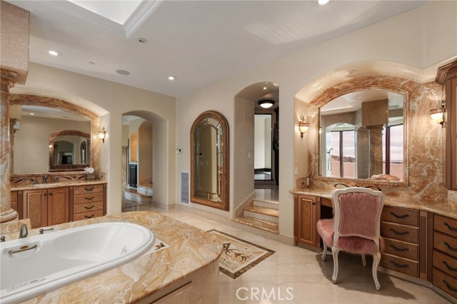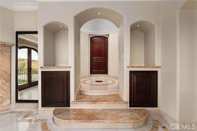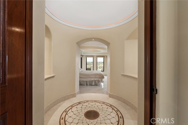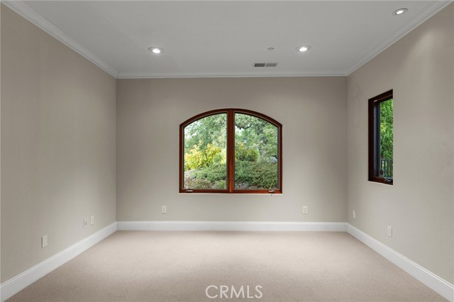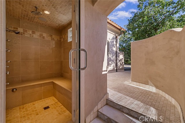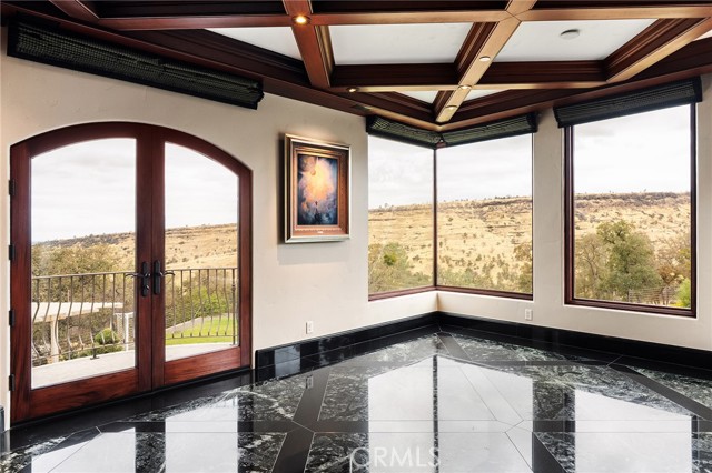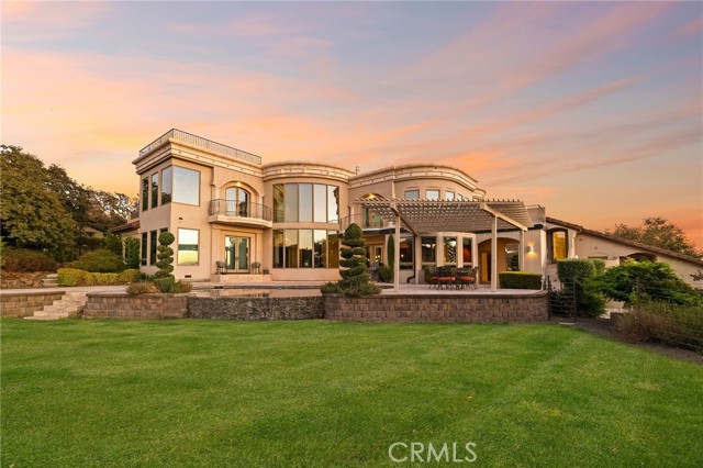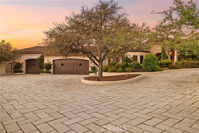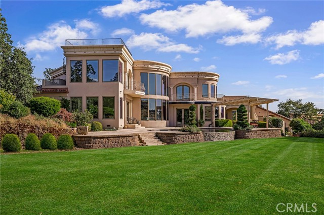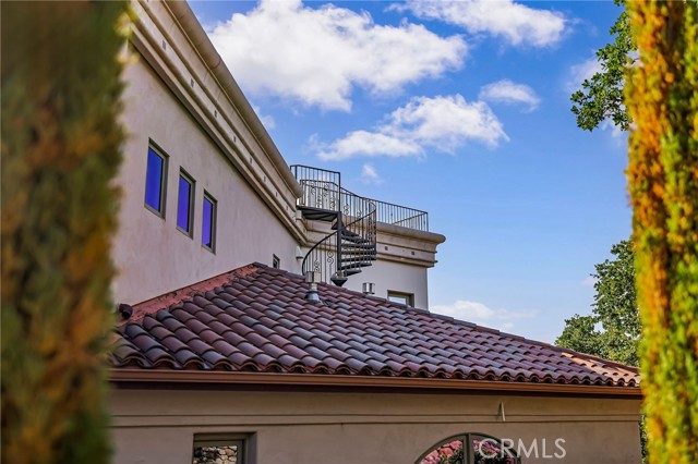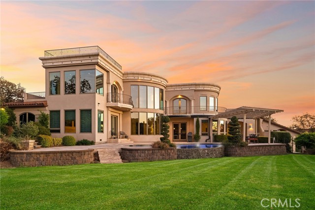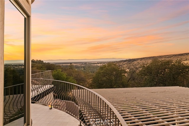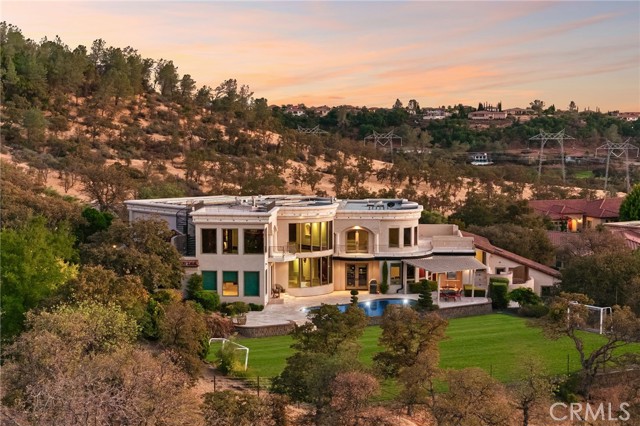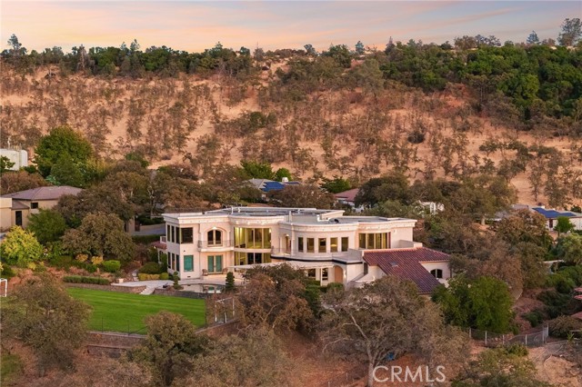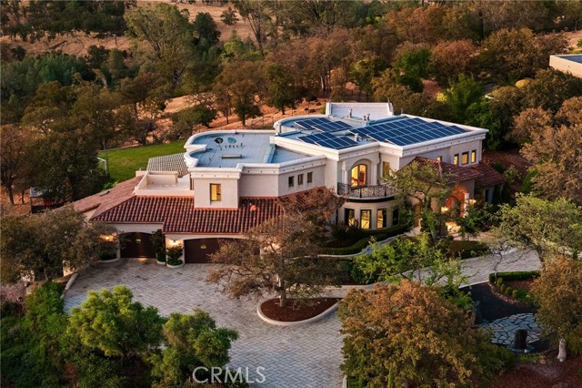 Gracefully set on 1.2 acres in the exclusive Canyon Oaks Country Club, this Mediterranean-inspired estate is a rare expression of enduring beauty and refined living. Thoughtfully envisioned by its original owners and masterfully built by renowned custom homebuilder Michael Gali, the residence captures the essence of architectural sophistication, elevated comfort, and seamless integration with its natural surroundings. Nestled along the boundary of Upper Bidwell Park, the property has direct access to the South Rim Trail, offering unobstructed entry to Chico’s most iconic landscapes. A welcoming circular driveway, gracefully created with granite pavers, winds through the property and sets the tone for a truly unforgettable arrival. An inviting storybook-style balcony, poised beside a majestic covered entrance, evokes the feeling of timeless grandeur. Inside, a dramatic foyer reveals soaring ceilings, a sweeping spiral staircase, and radiant light dancing across Italian marble floors. The Great Room features striking rotunda windows with panoramic canyon views, seamlessly blending the indoors with nature. The chef’s kitchen boasts all-Viking appliances, a double oven, and bespoke mahogany cabinetry. Four spacious bedrooms and four-and-a-half baths include a primary suite with private terrace, sunken palatial tub framed by marble columns, and dual showers offering floor-to-ceiling views-an unforgettable start or end to any day. An ambient mezzanine connects the home’s wings, while a richly appointed library features a fireplace, built-ins, and terrace access. A three-car tiled garage blends style with practicality. Modern amenities abound: a private theater, five fireplaces, radiant floor heating, Lutron drapes, smart lighting, surround sound, water softener, and owned solar ensure comfort and efficiency. Outdoors, enjoy a shimmering pool, multiple verandas, a poolside bath and designer shower. A separate steam room offers a luxurious spa-like escape, perfect for relaxing after a hike or a day on the green. Evenings are best savored from the rooftop terrace, where breathtaking canyon and sunset views stretch endlessly across the horizon. Whether enjoying intimate conversation under starlit skies or selecting a vintage bottle from the in-ground, temperature-controlled wine cellar, the experience is nothing short of magical—designed to elevate daily living into something extraordinary. A true haven, this sanctuary blends fine craftsmanship with timeless beauty.