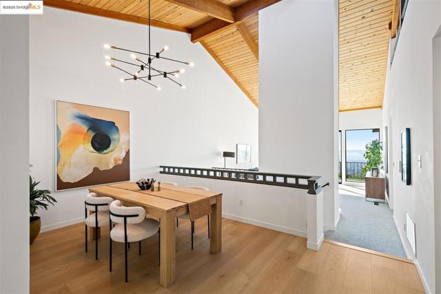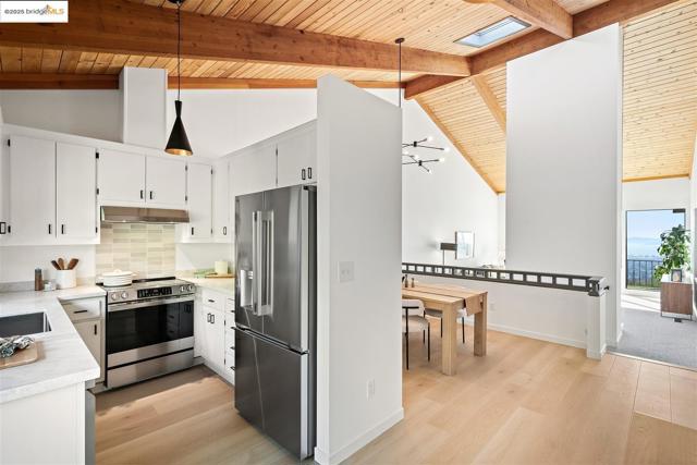A hillside haven in coveted Hiller Highlands, 23 Binnacle Hill showcases panoramic views of San Francisco, the Golden Gate Bridge, Marin, and beyond—set amongst expansive, privately owned community hillside that provides a rare sense of space and natural beauty. Built in 1993, this contemporary 2+ bedroom, 2 bath home features an airy open floor plan with soaring vaulted ceilings that flood the interior with natural light. Perfect for both entertaining and everyday living, the home offers a view deck off the living room and a private garden off the kitchen, creating a seamless indoor-outdoor flow. Inside, the spacious living room serves as the centerpiece of the home, while the recently updated kitchen—appointed with stone counters and all-new appliances—combines style and function. Ideally situated where the Berkeley and Oakland Hills meet, Hiller Highlands provides convenient access to Rockridge, Elmwood, Piedmont, Orinda, and Lafayette, along with direct freeway connections to San Francisco for commuter convenience. Views: Downtown