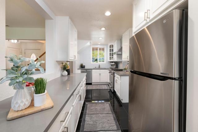 Set high above the Bay with spectacular views, this beautiful 4-bed, 2-bath home blends style with seamless indoor-outdoor living. Designed for both comfort and flexibility, the home features two view balconies and a 560sqft deck perfect for entertaining, relaxing, and watching sunsets. Inside, the open-concept living area showcases refinished red oak hardwood floors, a gas fireplace, stylish kitchen with black marble tile floors, marble countertops, and a glass tile backsplash. A versatile lower-level room with its own private exterior entrance offers endless possibilities: home office, studio, or creative pursuits. The bedroom layout offers two bedrooms and a full bath on the main level, with two additional bedrooms and a full bath upstairs, providing great separation of space. Out back, a serene garden oasis awaits. Raised vegetable beds, a private seating nook, and a lush lawn create the perfect setting for slow mornings, golden afternoons, and garden-to-table living. An attached 2-car garage, additional driveway parking, and easy access to Caltrain, commute routes, and SFO (just 15 minutes away) make daily life effortless. Discover a home where comfort, style, and views come together and all just minutes from shopping, dining, work, play and local conveniences. Keys please!