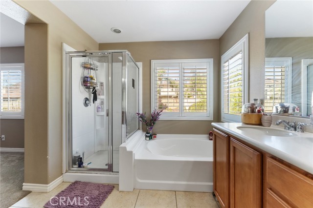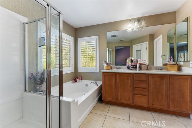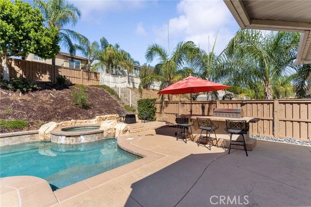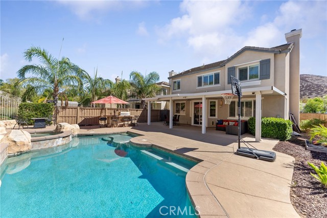 *** Welcome to Canyon Hills Living at Its Finest! *** Step into this stunning Canyon Hills home where luxury, comfort, and entertainment come together perfectly! Boasting excellent curb appeal with an inviting open floor plan, this residence features vaulted ceilings, elegant stone floors, plantation shutters throughout, and neutral designer paint that complements any style. The gourmet kitchen offers a spacious island with a eatery, walk-in pantry, and seamless flow into the cozy family room with a fireplace — ideal for gatherings and everyday living. Upstairs, you’ll find a gorgeous loft with custom cabinetry, a convenient laundry room, and large bedrooms including a spacious primary suite for ultimate relaxation. Your private backyard oasis is made for entertaining! Enjoy a huge Alumawood patio with ceiling fans and lighting, a sparkling pool and spa complete with custom built-in slide, and a BBQ island with umbrella — perfect for summer parties and weekend fun! The garage is equally impressive, featuring sleek epoxy floors, custom closets, and overhead racks — providing plenty of organized storage space for tools, gear, and all your holiday decorations. Nestled in the award-winning Canyon Hills master-planned community, residents enjoy resort-style amenities including multiple pools and spas, sports fields, basketball courts, kids’ play areas, a splash park, cornhole courts, dog park, walking trails and picnic-ready open spaces with BBQs. With top-rated schools and a convenient shopping plaza just minutes away, this home truly has it all! Don’t miss your chance to experience the Canyon Hills lifestyle — where every day feels like a vacation!