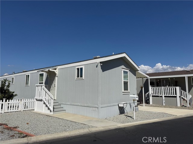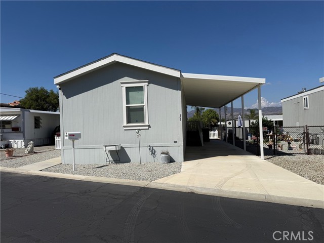 Welcome to Fairview Park Estates, a 55+ community in East Hemet! This beautiful 2020-built home offers 2 bedrooms and 2 bathrooms across 868 sq. ft. of comfortable living space. The open floor plan features a spacious living area that flows seamlessly into the kitchen and dining area, perfect for entertaining or everyday living. The kitchen boasts modern cabinetry, ample counter space, and granite-style finishes. Each bedroom is located on opposite ends of the home for added privacy, with the primary suite offering a large closet and private bath. Enjoy peaceful mountain views from your covered carport or from the rock scaped yard, complete with a small fenced area and storage shed. The home also features an accessibility ramp and a quiet location within the park. Fairview Park Estates is a 55+ community offering a clubhouse with pool and spa, library, laundry and recreation area. Low space rent of approximately $630 per month includes access to all park amenities. Move-in ready and meticulously cared for — this home combines modern comfort with affordable senior living in the heart of Hemet. MORE PHOTOS COMING SOON!