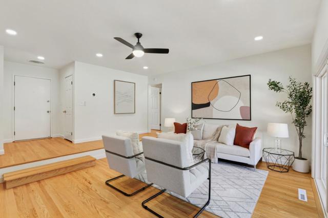Welcome to your dream home in the sought-after Cambrian area. Quality upgrades, sustainable features, and smart home technology are featured along with hardwood floors, fresh paint, and recessed LED lighting. Spacious living room with two-way brick fireplace shared with the kitchen and dining room combo, each with sliding glass doors to the rear yard. 3 bedrooms and 2 stylishly remodeled bathrooms include the primary suite with sliding glass doors to the rear yard. Owned 2 NEM 2.0 Solar Systems for 4KW & 4.1KW total 24 panels, Nest thermostat, video doorbell, dual-pane windows, Tesla charger, new roof insulation plus newer furnace and air conditioning. Picture-perfect curb appeal with lawn, roses, hydrangeas, and crape myrtle along with an oversized private rear yard with synthetic lawn, expansive patio areas, fruit trees, new roof insulation, and arbor-covered lounge area all for year-round entertaining and play. Attached 2-car garage with laundry hookups. Sidewalk-lined neighborhood minutes to shopping, dining, Whole Foods, Trader Joes, Costco, Almaden Lake, and all of Silicon Valley via Highways 85, 87, and 17. A must see!