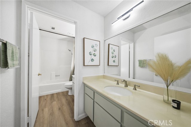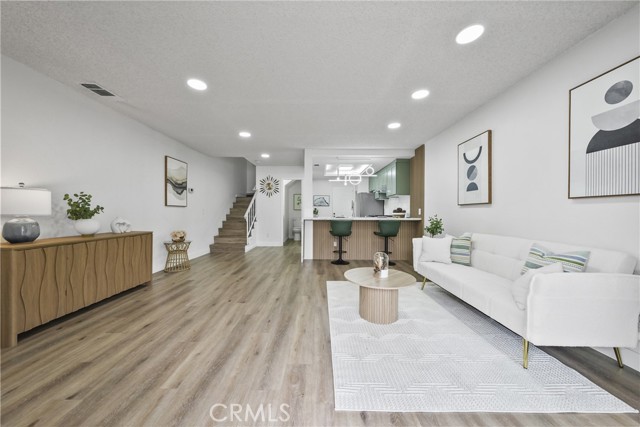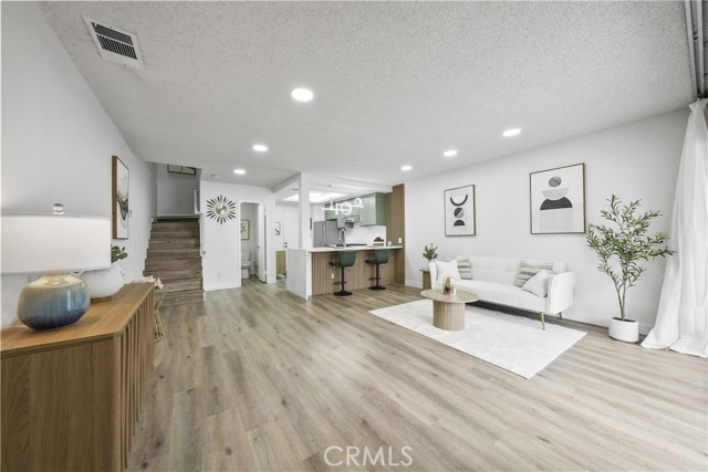 Welcome to 1517 McCabe Way, located in the gated Solana Park community in West Covina. This two-story home features 2 bedrooms and 1.5 bathrooms with approximately 1,025 square feet of living space. The main level offers an open floor plan combining the updated kitchen, dining, and living areas. The kitchen includes new cabinetry, quartz countertops with matching backsplash, a gas range with stainless-steel hood, a dishwasher, and a functional center island. Sliding glass doors from the living room open to a private front patio with a new composite deck, providing a comfortable outdoor space. A guest powder room and a storage closet complete the first floor. Upstairs has two bedrooms on opposite sides for privacy, both with spacious closets, and a shared full bathroom. A dedicated laundry room adds convenience. The attached two-car garage features a new epoxy floor, and guest parking is available throughout the community. Solana Park offers two swimming pools, a spa, picnic areas, and a basketball court, with HOA covering common area maintenance and trash service. The home is close to Merced Elementary, Hollencrest Middle, West Covina High School, Mt. San Antonio College, shopping centers, restaurants, and easy access to the 10 and 60 freeways.
