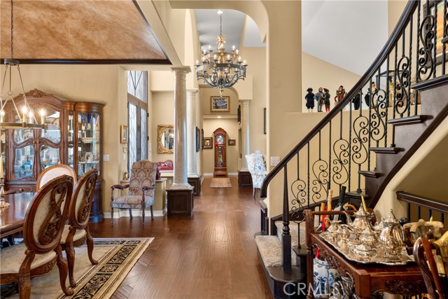 Luxury Estate on the 7th Tee | Welcome to the ultimate entertainer’s dream home at 22285 Bear Creek Dr. N in the prestigious guard-gated community of Bear Creek Golf Club—a private oasis nestled in the heart of Murrieta. Positioned along the 7th tee, this luxurious estate spans over 6,100 sq. ft., showcasing exceptional design, expansive living spaces, and breathtaking golf course views. Inside, the home features 6 bedrooms with four on the first level, and 4.5 baths. The home is thoughtfully laid out across three levels. The main floor boasts elegant formal living and dining areas, a generous family room with fireplace and wet bar, and a chef-inspired kitchen with Sub-Zero appliances, double ovens, a large center island, in-kitchen dining nook, desk area, and abundant cabinetry. Four bedrooms, including the expansive owner’s suite, are located on this level, offering comfort and convenience. Upstairs, a private office with balcony access provides an ideal work-from-home retreat. The lower level is an entertainer’s paradise, featuring a huge theater room with seating for over 12, a private hidden wine cellar, an additional bedroom and bath, and direct courtyard access—perfect for hosting unforgettable gatherings. Outdoors, enjoy a beautifully landscaped paver patio, built-in BBQ, fire pit, and ample space for a future pool. The 4-car garage offers plenty of room for vehicles, storage, and tools. Bear Creek is renowned for its challenging Jack Nicklaus-designed golf course, as well as its world-class amenities including fitness center, tennis, pickleball, bocce, pool, and spa. Located minutes from shopping, dining, top-rated schools, hiking and biking trails, and the Santa Rosa Plateau Nature Reserve. Key Features: 5 Bedrooms | 4.5 Bathrooms | 6,100+ Sq. Ft. Private Theater Room (seats 12+) Hidden Wine Cellar Chef’s Kitchen w/ Sub-Zero Appliances Owner’s Suite on Main Level Upstairs Office & Balcony 4-Car Garage Golf Course Views off the 7th Tee Guard-Gated Community with Premium Amenities This exceptional estate is a rare opportunity to live and entertain in one of Murrieta’s most exclusive communities. Come experience the lifestyle only Bear Creek can offer. Buyer to verify all information including square footage and lot size. Broker, agents and seller do not guarantee accuracy of public records or MLS data. Sellers have information that may be different then public records for square footage. Buyers to verify accuracy.