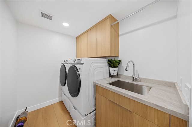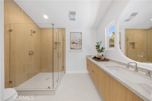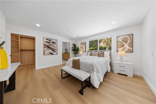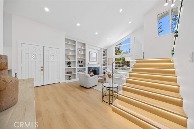 A rare, fully reimagined designer home in Orange County—truly turnkey and custom rebuilt to perfection. Located in the prestigious Montbury on the Hill community in North Lake Forest, this stunning residence was transformed by a Newport Beach-based professional designer focused on luxury, functionality, and signature style. For buyers tired of cookie-cutter tract homes, this is a custom alternative that stands out in every way. Among its most exceptional features are dual primary suites—one on each level—ideal for multigenerational living, guest flexibility, or a dedicated office. Natural light floods the home through soaring ceilings and expansive windows, creating a warm, open, and elevated atmosphere. The chef’s kitchen features GE Café appliances, Taj Mahal quartz countertops, custom cabinetry, and integrated LED light strips that extend into the closets and staircase—every inch thoughtfully crafted. A spacious family room offers a custom media wall, built-ins, and an open lounge with a transparent glass wine display. The downstairs suite includes sliding-door access to the backyard, a spa-style bath with a freestanding tub, dual rain-head shower, double vanities, and a large walk-in closet that can double as a dressing room or office. Upstairs, a second primary suite offers a fireplace, full bath, and large sitting area. Two additional bedrooms feature custom closets and share a dual-sink bath. Upgrades include new PEX repiping, dual-pane energy-efficient windows and sliders, smart LED lighting with dimmers, a modern tempered glass staircase, new flooring, new doors and hardware, fully customized closets with lighting, and a brand-new roof currently being installed. Two fireplaces—one in the living room and one in the upstairs suite—add warmth and charm. The landscaped backyard features a covered patio, pool, and expansive lawn ideal for entertaining. A 3-car garage, extended driveway, and separate laundry room offer everyday convenience. The community includes tennis and pickleball courts, scenic equestrian and hiking trails, and well-maintained parks. Conveniently located near the 241 Toll Road and I-5 freeway access, and surrounded by well-rated public and private schools. Renovated to the highest standards, this home has not been occupied since its transformation—show with confidence; there’s truly nothing else like it on the market.