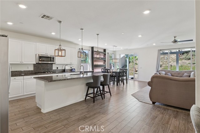 NEXT-GEN POTENTIAL! RV PARKING! NO HOA! COMPLETE PRIVACY! TURN-KEY SINGLE-STORY HOME! MORTGAGE SAVINGS MAY BE AVAILABLE FOR QUALIFIED BUYERS OF THIS LISTING!! This beautifully upgraded single-story home combines comfort, functionality, and modern design. The open layout features wide hallways and wood-look tile flooring throughout the main living areas, with plush carpet in the bedrooms for added comfort. The kitchen is a true chef’s space, complete with sleek cabinetry, granite countertops, a double oven, and new, top-of-the-line appliances. The spacious great room centers around a cozy gas fireplace, perfect for gatherings. The thoughtful floor plan includes a large laundry room with built-in storage and a flexible layout ideal for multi-generational living. Outdoors, enjoy privacy and low-maintenance design with custom concrete, a covered patio, and landscaped planters. The side yard provides full concrete access, a wide gate, ideal for RV, boat, or extra storage. With no HOA and a welcoming neighborhood, this home delivers the perfect blend of privacy, style, and community.