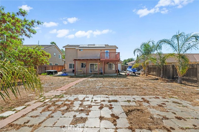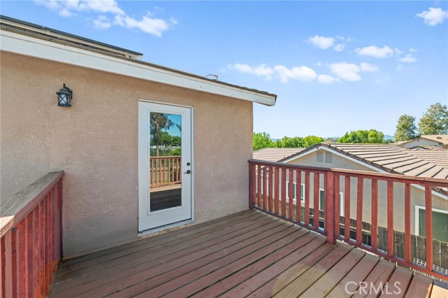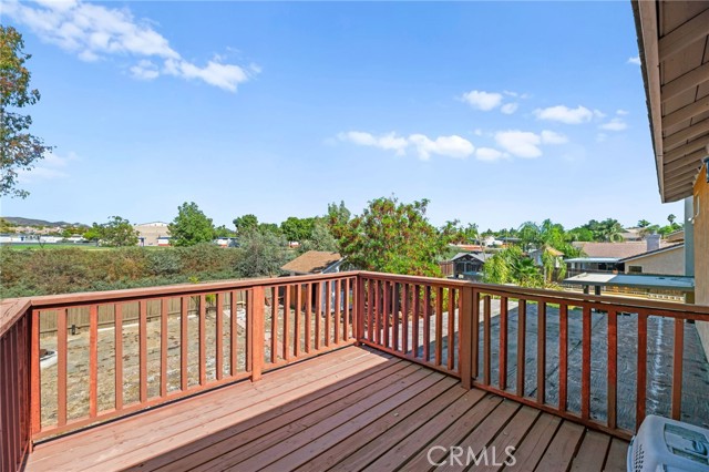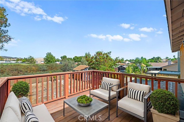Beautifully upgraded 3-bedroom, 2.5-bathroom home located in the desirable California Oaks community of Murrieta. This two-story residence features approximately 1,509 sq ft of living space on a spacious 6,970 sq ft lot. Interior upgrades include new vinyl plank flooring throughout, updated lighting and plumbing fixtures, and freshly painted interiors. The remodeled kitchen is equipped with stainless steel appliances, a 6-burner gas range, reverse osmosis water filtration system, and a newer refrigerator that conveys. Upstairs you'll find all three bedrooms, including the primary suite with dual sinks, a walk-in closet, and a private balcony overlooking the backyard. The large backyard is fully fenced and includes a covered patio, storage shed, and ample space for a future pool or ADU. The home also features a newer garage door, central HVAC, and double-pane windows plus a Tesla EV charging system. Washer, dryer, and refrigerator are included. Buyer to assume solar lease. No HOA, No Mello-Roos, and low property taxes. Conveniently located near top-rated schools, shopping, dining, and freeway access.