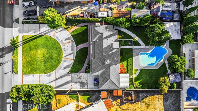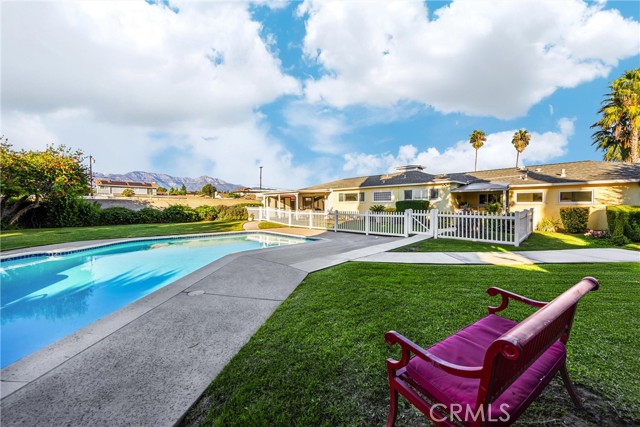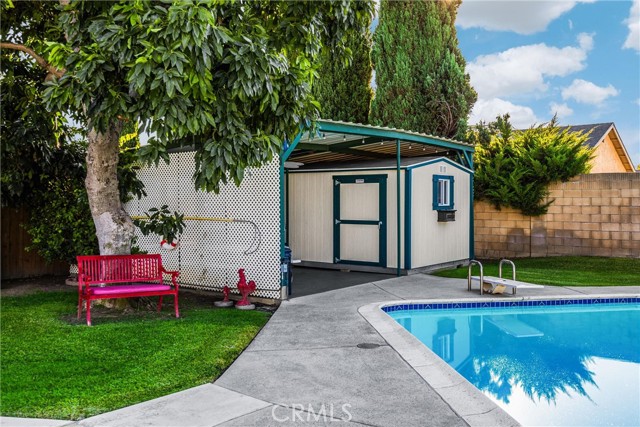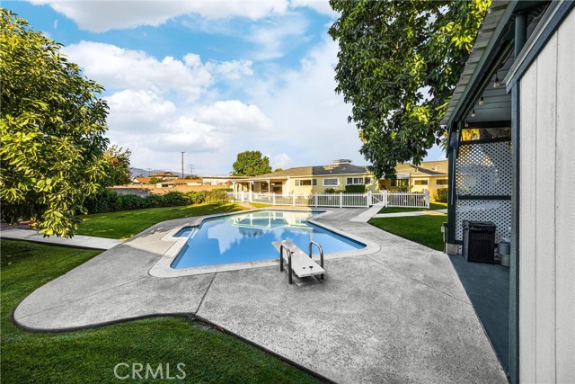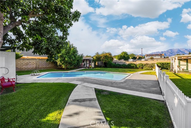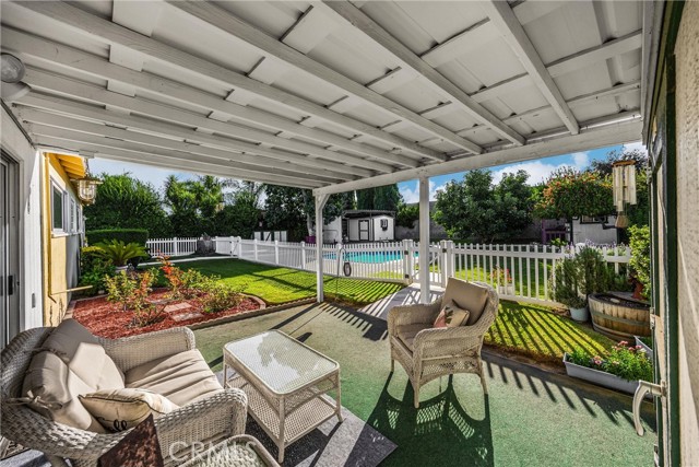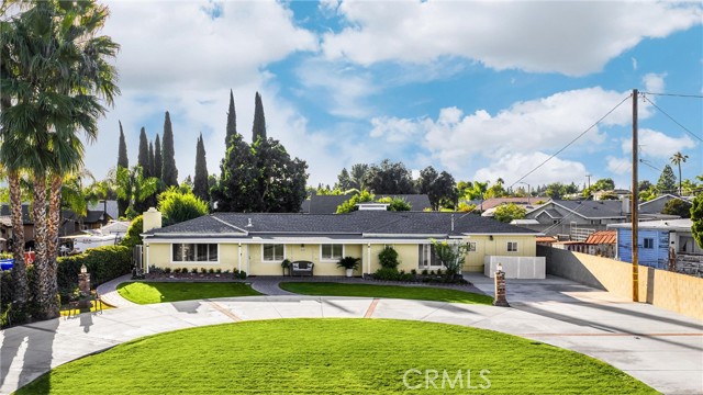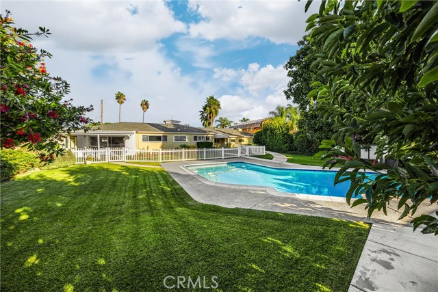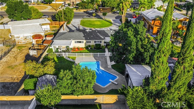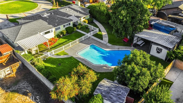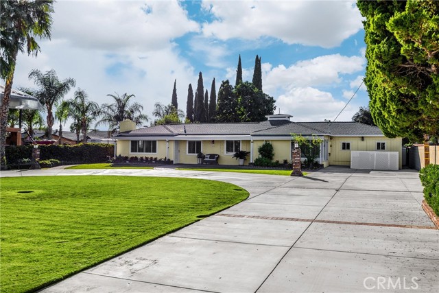 If you've been searching for a single-story pool home that blends charm, function and space for both entertaining and creativity, this is the one! Pride of ownership shines throughout this beautifully maintained 3 bedroom, 2 bath home offering 1,622 sq. ft. of living space on an impressive 16,660 sq. ft. lot. Set back from the street with a spacious circular driveway that provides plenty of room for parking, this home welcomes you with warmth, character and a sense of tranquility. Inside, you'll find a light-filled living area perfect for gatherings, dining a well-appointed kitchen with corian countertops. Garage has been converted that provides a spacious bonus room, ideal for entertaining, hobbies, flex space or fourth bedroom. The home features a blend of carpet, wood laminate and tile flooring, creating a comfortable and inviting atmosphere throughout. Step outside to your private backyard retreat featuring a covered patio, sparkling pool, mature landscaping and two large avocado trees Two storage sheds offer plenty of space for tools, gardening or hobbies, while the large overhead covered area provides a versatile space for working on special projects, hosting gatherings or simply relaxing poolside. This lovingly cared-for property has been the heart of many joyful gatherings and is ready to welcome its next chapter of memories.