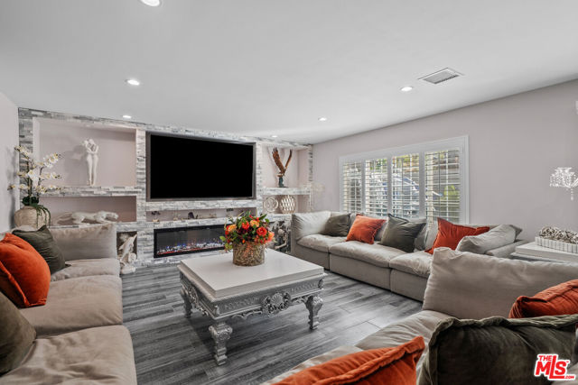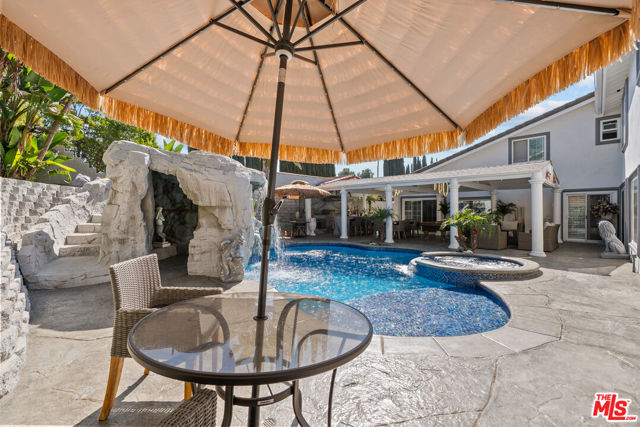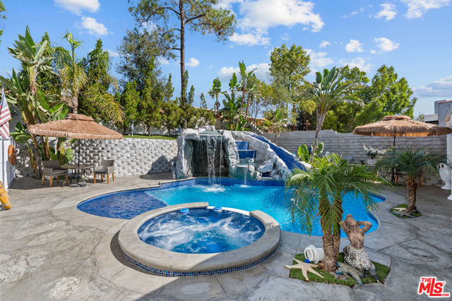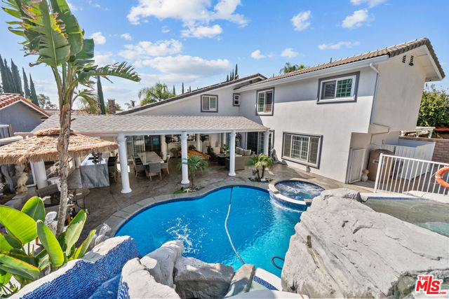 Welcome to this updated entertainers home which features tons of upgrades, Shutters throughout the home, paid off solar panels, Viking appliances, gorgeaus chandliers, recessed lighting, granite counter tops, updated bathrooms, laundry down stairs and upstairs, an Italian marble custom fireplace, Verde Butterfly granite stairs, 2 master suites, smart toilets in master bath, custom self closing closet in master retreat, an amazing tiled pool with water features and grotto perfect for enjoyment, a beautiful outdoor kitchen with patio custom made with grey Italian marble with built in BBQ and appliances, exterior stucco crystal white smooth finish, this home is a must see, open concept living, Milgard windows with a lifetime warranty. Two central air units. This one of a kind home features lots of custom bold designs and pride with ownership. Close to Sierra High School, Germain Academy For Academic Achievement, Earnest Lawrence Middle school and Chatsworth Charter High School. Nearby shops and various dining restaurants.