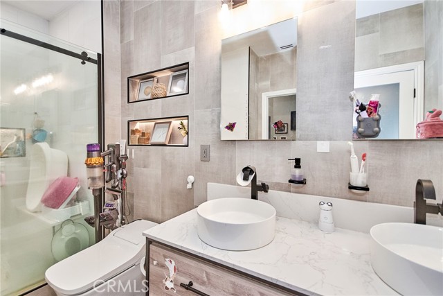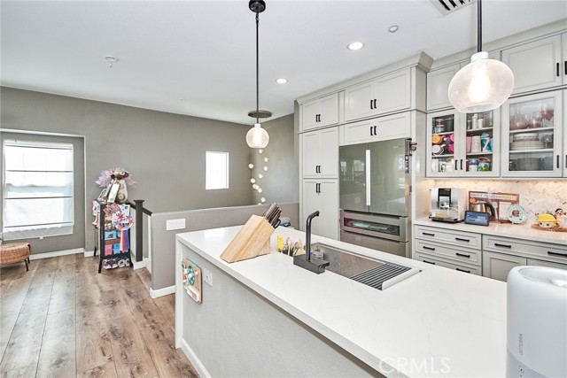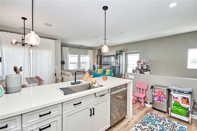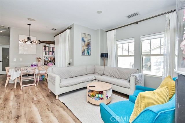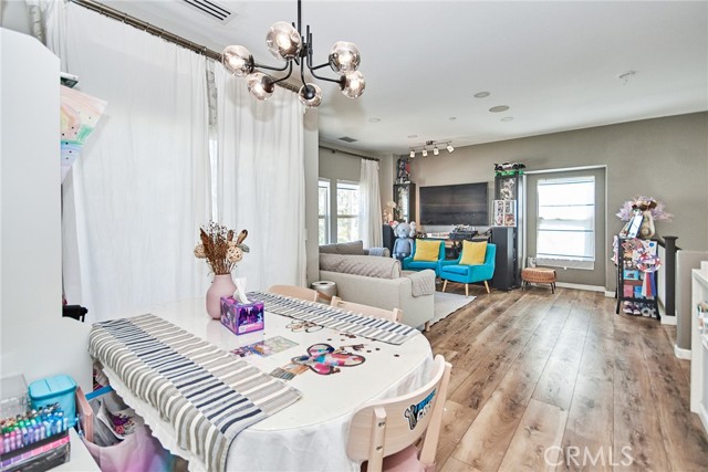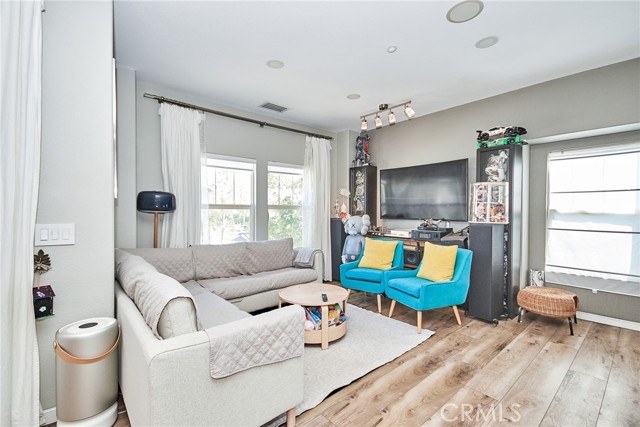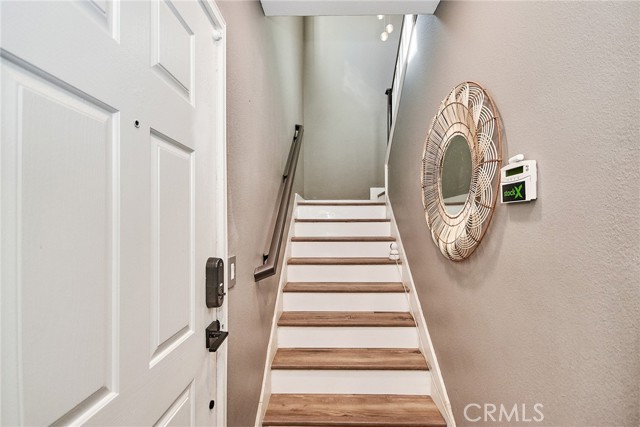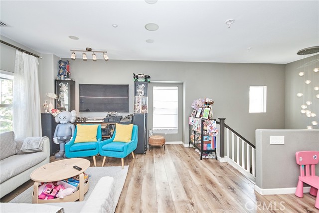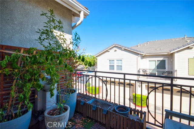 Discover the epitome of modern living in this exquisite corner unit within Rancho Cucamonga's prestigious Brighton at Etiwanda community. This thoughtfully upgraded 2-bedroom, 1-bath residence boasts an open-concept layout with soaring ceilings, where all living spaces are conveniently situated upstairs for enhanced privacy. The contemporary kitchen stands out with its self-closing cabinets, premium quartz countertops, stainless steel appliances, and generous pantry—ideal for everyday meals or hosting gatherings. Adjacent, the dining area features a chic light fixture and seamlessly connects to the living room, bathed in natural light from expansive windows. Step out from the living space or the master bedroom onto one of two private balconies, perfect for morning coffee or evening unwinding. The master suite offers a spacious walk-in closet, direct balcony access, and an en-suite bath with dual sinks, modern cabinetry, quartz vanity, and a walk-in shower. Throughout the home, durable wood-look waterproof luxury vinyl flooring adds a touch of elegance, complemented by a convenient indoor laundry area for full-sized appliances. Additional highlights include a large attached 2-car garage with direct access and extra storage, plus recent remodels in the kitchen and bath. Community perks abound with low HOA dues covering water, along with access to a resort-style pool, spa, outdoor showers, BBQ and picnic areas, and a playground. Ideally positioned just moments from Victoria Gardens for upscale shopping, dining, and entertainment, and with seamless connectivity to the 15, 210, and 10 freeways, this home delivers unparalleled convenience in a sought-after neighborhood. Schedule a viewing today and envision your future here.