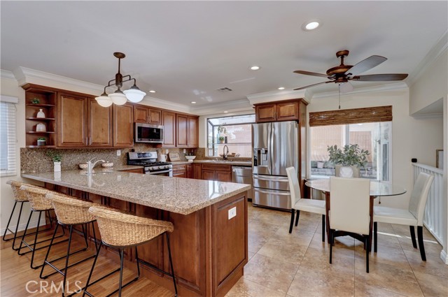 Welcome to Orangewood Estates, 6906 Molokai Dr, a beautifully maintained and thoughtfully updated home nestled in the heart of Cypress. Offering 4 spacious bedrooms and 2 bathrooms across approximately 2,100 square feet of living space, this home sits on a 5,000 square-foot lot in a highly desirable neighborhood within the Garden Grove Unified School District. Step inside to discover a bright and open layout featuring an updated kitchen complete with a large breakfast counter, wine fridge, and modern finishes—perfect for entertaining or casual family dining. The added family room provides extra space for relaxing, hosting guests, or creating a home office or media room. Recessed lighting, dual-pane windows, and central A/C enhance comfort and energy efficiency throughout the home. A downstairs bedroom offers flexibility for guests, multi-generational living, or a home office, while the remaining bedrooms upstairs provide ample space and privacy. The exterior offers low-maintenance landscaping and room for outdoor gatherings or gardening. Located in a central area of the track, this home is just minutes from parks, shopping, dining, and top-rated schools. Don’t miss your opportunity to own this exceptional Cypress home with modern upgrades and a family-friendly layout!