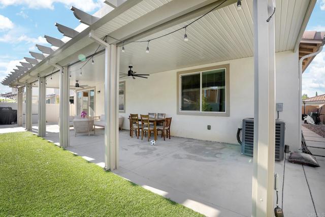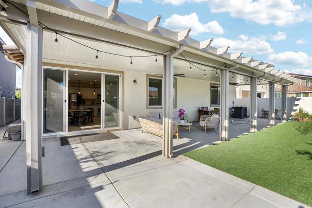 Welcome to Spencer’s Crossing, where modern elegance meets relaxed California living. Come in and enjoy single-story living at its best! This energy-efficient 3-bedroom PLUS BONUS ROOM, 2.5-bathroom home is light, bright, and move-in ready. You’ll fall in love with its open-concept family room that flows seamlessly into the large kitchen with granite countertops and an expansive island, perfect for entertaining and family gatherings. Step through the spacious entryway into a home that blends comfort, flexibility, and function, offering plenty of space to make it your own. Inside, you’ll find fresh NEW interior paint and NEW luxury flooring throughout, creating a modern and inviting atmosphere. An OPTIONAL room offers flexible use as a spare bedroom, den, or office, while two spacious bedrooms are conveniently located near a dual-vanity hall bath. The primary suite is a private retreat featuring a spa-like ensuite with soaking tub to unwind at the end of the day. Step outside to enjoy low-maintenance landscaping, CUSTOM BUILT covered patio, and artificial turf with drought-resistant plants and fruit trees, creating the perfect space for relaxation and entertaining. The home also includes PAID SOLAR and a tankless water heater. Located in the highly desirable Spencer’s Crossing community, residents enjoy access to The Oasis, an exclusive resort-style area with two pools, firepits, picnic and BBQ spaces, along with The Clubhouse, sports parks, dog parks, playgrounds, and scenic walking trails. All this, just 15 minutes from Temecula Wine Country, top-rated schools, and everyday conveniences along Winchester Road. More than just a home, Spencer’s Crossing offers a lifestyle built on comfort, connection, and California charm.