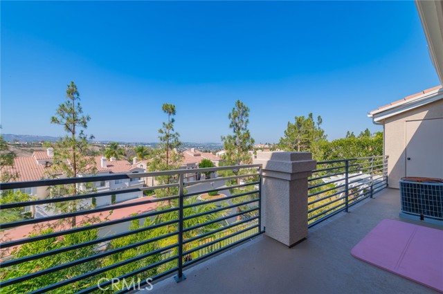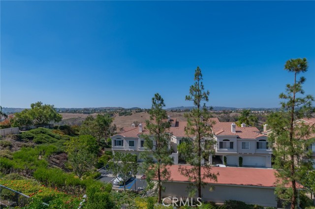 Welcome to this bright and inviting home in the desirable Costa Brava community, offering open space, natural light, and sweeping panoramic views. The spacious living area features vaulted ceilings and connects seamlessly to the dining room and kitchen, creating an easy flow for everyday living and entertaining. The main floor includes a comfortable primary suite with a private bath and ample closet space, plus a secondary bedroom perfect for guests or family. Upstairs, the versatile loft with its own full bath can serve as a third bedroom, office, or flex space. Enjoy the large private balcony ideal for outdoor dining or relaxing while taking in the view. Additional features include an attached one-car garage with direct access, a detached garage, Nest thermostat and sensors, plantation shutters, and ceiling fans. Costa Brava residents enjoy a pool, spa, and playground, with nearby trails around Laguna Niguel Lake and Aliso & Wood Canyons Park. Conveniently located near shopping, dining, beaches, and major freeways, and with optional membership to The Club at Rancho Niguel offering tennis, pickleball, gym, and more—this home combines comfort, function, and the best of South Orange County living.