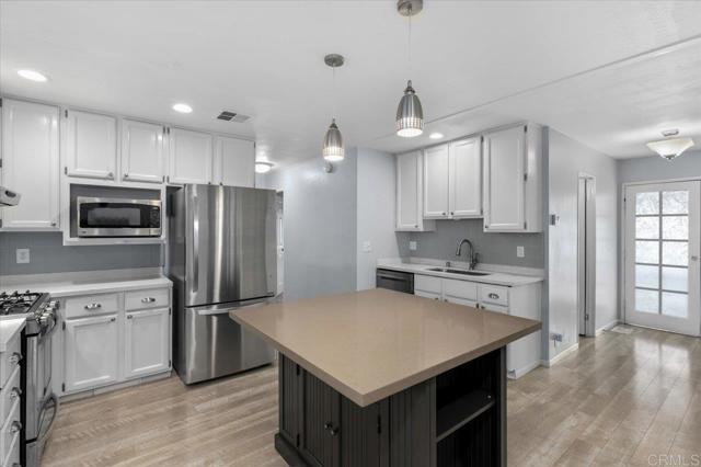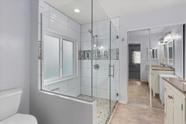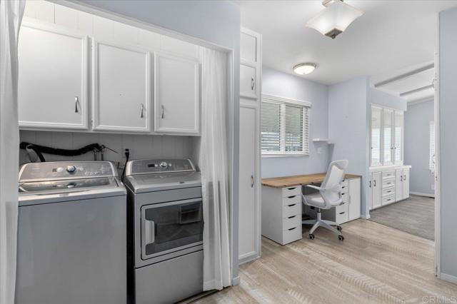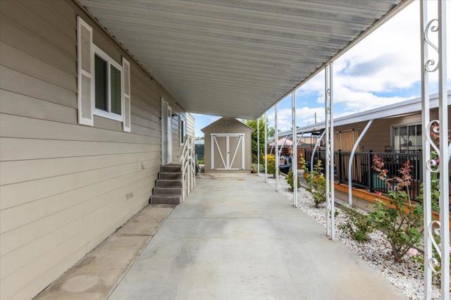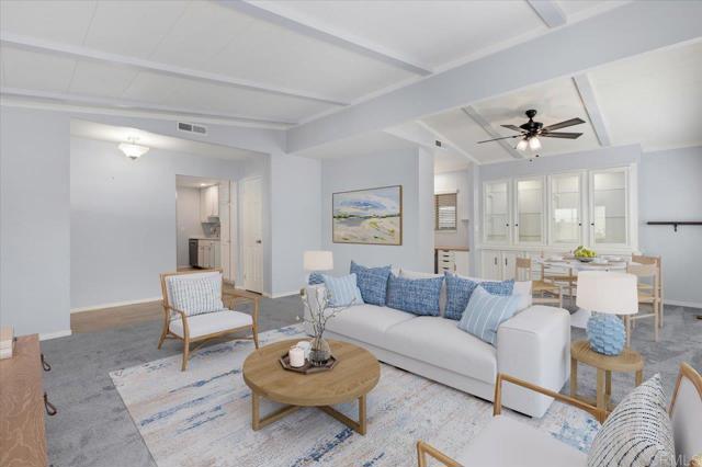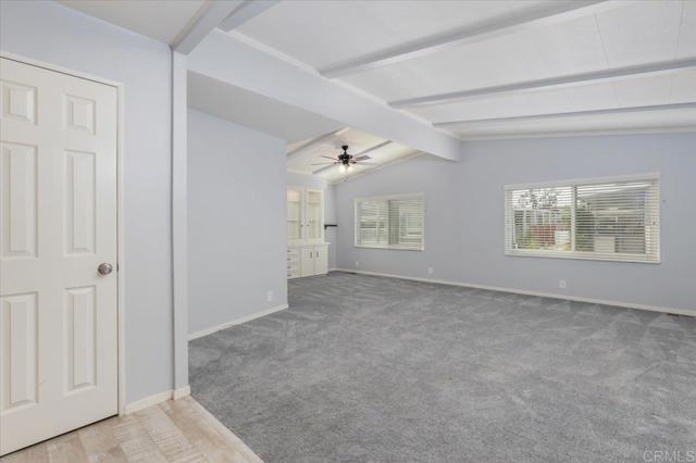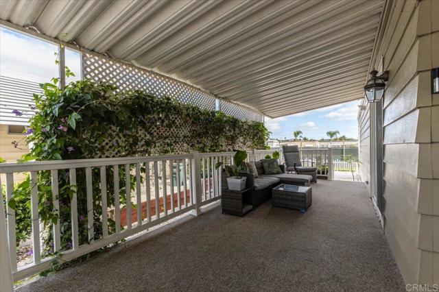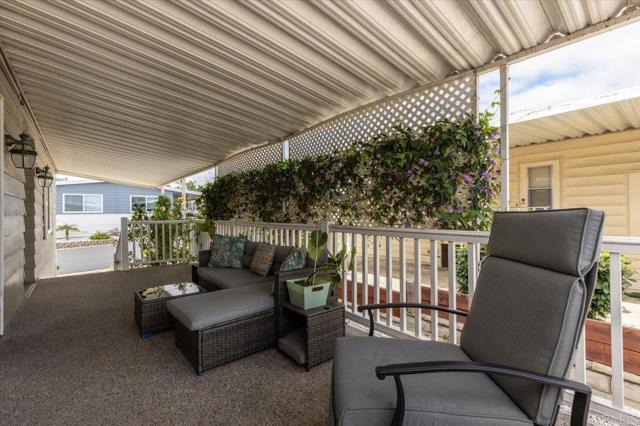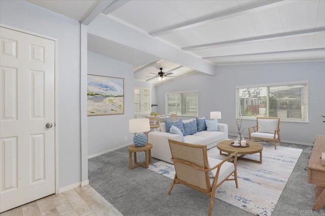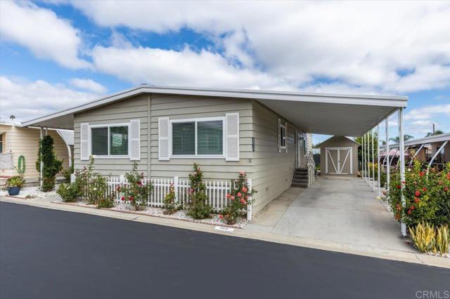 Lovely and unique remodeled 2 bed / 2 bath located in a 55+ rent controlled park with NO property taxes (home is still on HCD registration). Tucked away on a cul-de-sac near the Tennis Courts and other amenities, this home boasts a remodeled Kitchen and Bathrooms, vaulted ceilings in the Living room and Dining room, dual pane windows, newer interior doors and fixtures, and a separate office space. The Primary Suite boasts double sinks, a walk in closet, and a spacious custom step in shower. The second Bedroom also has it's own ensuite Bathroom, which is convenient for guests or roommates. The exterior offers a low maintenance yard, private covered porch, a covered carport that can fit multiple vehicles, and a storage shed. Palomar Estates East is a very active and social 5* community - check out the photos to see some of the amenities this community has to offer! Convenient to shopping, restaurants, Lake San Marcos, two golf courses at Lake San Marcos, another golf course nearby off Twin Oaks, entertainment, lots of parks and trails, the San Marcos Senior Center, and just a short 8 mile drive to Carlsbad beaches! Monthly space rent is only $568.61 and is under rent control!
