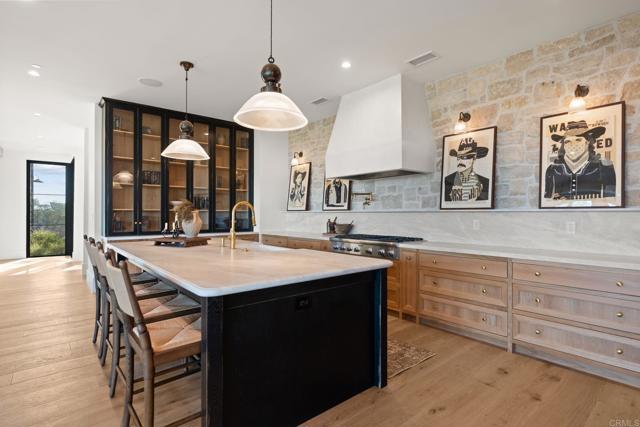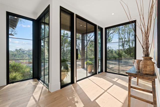 A New Construction Masterpiece Above the Clouds in the West Side Covenant of Rancho Santa Fe. Perched upon a desirable hilltop in Rancho Santa Fe, this spectacular new construction ranch estate with a modern twist was completed in 2025 and offers a top-of-the-world location, granting rare sweeping views from East to West that allow you to live in serenity among the treetops. It is a private sanctuary, a genuine West Side Covenant home, that flawlessly merges timeless craftsmanship with contemporary luxury. The 4,359 SF, single-level residence is set on 1.54 meticulously maintained acres. It delivers 4 bedrooms, 3.5 spa-inspired bathrooms, a dedicated office, and a media room, all unified by an effortless, transparent indoor-outdoor flow. The architecture masterfully blends warm natural stone, rich wood accents, and expansive walls of glass that act as art, flooding the interiors with curated light. Inside, vaulted ceilings with exposed beams soar above the open living and dining spaces. The chef’s kitchen, a study in functional elegance, pairs bespoke custom cabinetry with high-performance stone surfaces, a commanding center island, and professional-grade appliances. Thoughtful design details, including wide-plank oak flooring and meticulously curated lighting, ensure every corner of the home feels both refined and utterly comfortable. The private primary suite is a true retreat, opening directly onto the patio with restorative views across the rolling hills. Outside, the property is framed by multiple entertaining terraces and lounging areas, complete with an outdoor fireplace, the perfect settings for taking in the daily, vibrant sunsets. Beyond the main residence, amenities include an 827 SF 3-car garage and meticulously landscaped grounds designed for low-maintenance beauty. This newly built estate offers a rare combination of contemporary design, single-level ease, and an unmatched location that is just minutes from the beach, the iconic Racetrack, polo fields, world-class golf, top-rated schools, and the charming Village of Rancho Santa Fe.