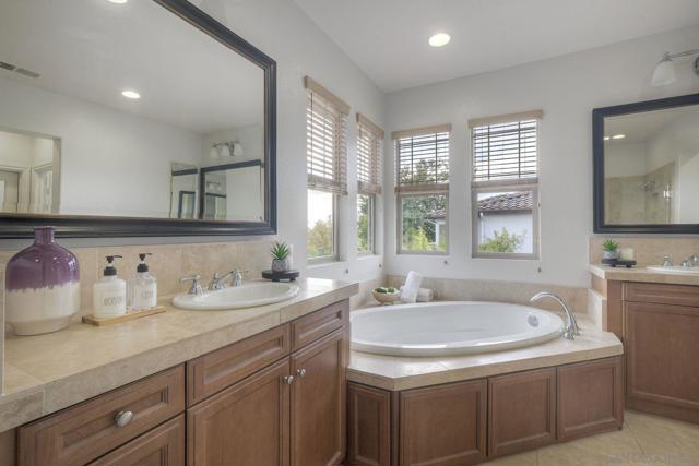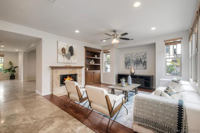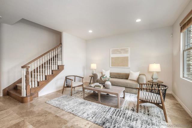 Location, Location, Location! Welcome home to this beautiful end-unit twin home in the heart of Del Sur. One of San Diego’s most sought-after family communities! With fully owned solar and tons of natural sunlight all day long, this home has everything you’ve been looking for. You’ll love being just a short walk to top-rated schools, parks, pools, and shopping—all right in your neighborhood. The spacious floor plan offers both a large family room and a separate living room, giving everyone plenty of space to spread out. The family room is perfect for relaxing, movie nights, or hanging out with friends. The dining room easily fits the whole family for meals and gatherings. The open-concept kitchen and living area make everyday life easy and fun. The kitchen features granite countertops, stainless steel appliances, upgraded cabinets, and plenty of storage, plus a cozy breakfast nook for casual meals. The living room is bright, comfortable, and great for family time or entertaining guests. Upstairs, you’ll find three bedrooms plus a built-in desk area, perfect for homework or working from home. The primary suite has great views, a spacious bathroom with dual sinks, separate shower and soaking tub, and a walk-in closet. The two additional bedrooms are just the right size for kids, guests, or a playroom. Home has a Ecowater RO filter system and is Electric car ready! Step outside to your private backyard, a perfect spot for barbecues, playing with the kids, or letting pets run around. The low-maintenance yard includes both grassy and paved areas for easy outdoor living. This is a must see home!