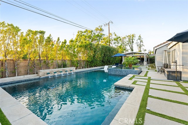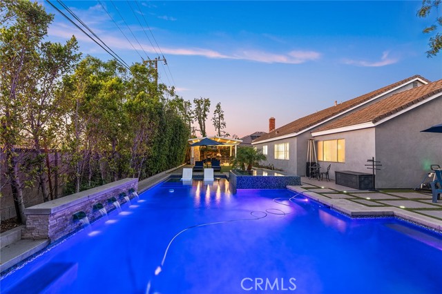 Resort-Style Living in Yorba Linda – Spacious Cape Cod with Pool, Spa & Outdoor Kitchen. Set on a generously sized lot in a desirable Yorba Linda neighborhood, this home offers the ideal blend of comfort, function, and outdoor living. The backyard is designed for year-round enjoyment—featuring a pool and spa with LED color-changing lights, a gas-plumbed fireplace and built-in outdoor kitchen, and a covered cabana for shaded relaxation. Whether you are hosting friends or winding down on a quiet evening, this space delivers the best of Southern California living. There's even a side yard with room for a dog run. Upon entering the front door, you are welcomed by a custom staircase with elegant wrought iron railings—an architectural detail that sets the tone for the home’s thoughtful design. Inside, the flexible floor plan includes 4 bedrooms, 3 bathrooms, a loft, and a 3-car garage. Vaulted ceilings and abundant natural light create a bright, airy feel throughout the main living areas. The downstairs primary suite features a remodeled bathroom, while a secondary bedroom and full guest bath nearby offer convenience for visitors or work-from-home needs. The kitchen includes granite countertops, a walk-in pantry, and plenty of prep space—flowing seamlessly into the family room with vaulted ceilings and a gas fireplace. Additional living and dining areas add versatility for everyday use and entertaining. Upstairs, you will find two more bedrooms, a remodeled full bath, a flexible loft area (ideal for a game room or TV space), and a bonus room that can serve as a study, reading nook, or extra storage. Recent upgrades include a new HVAC system with heat pump, air conditioning, and ductwork. Enjoy nearby access to El Cajon Trail, the Nixon Library, Redwood Grove, and local shops and dining. With so much to offer inside and out, this home is your private slice of resort-style living in the heart of Yorba Linda.