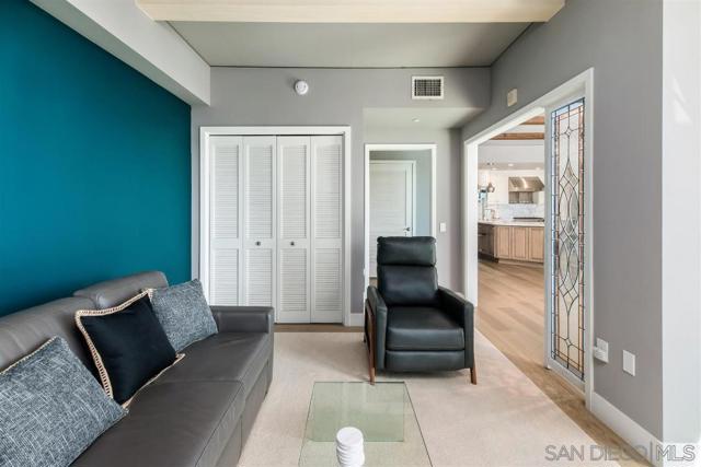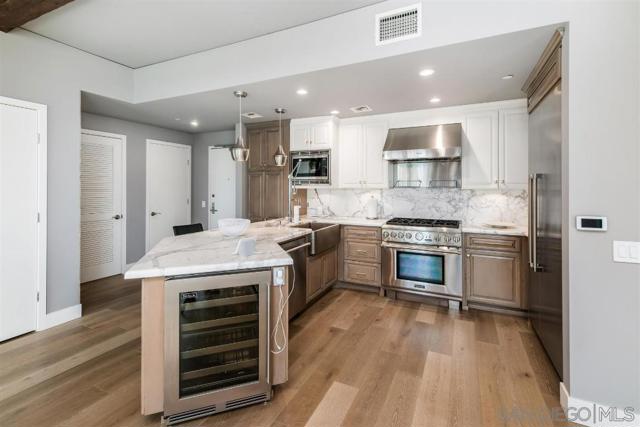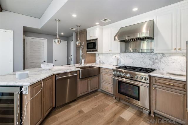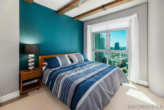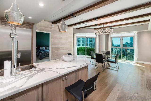 Enjoy luxury living at its finest atop Cortez Hill. Absolutely stunning condo w/Panoramic views of bay, bridge, city, & mountains from every room! Expansive open concept, 10ft beam ceilings & floor to ceiling windows w/ custom electronic shades. Professionally decorated & completely remodeled to perfection w/high end finishes. Chefs dream kitchen complete with Thermador appliances, wine fridge, copper trough sink & marble countertops. Custom designed his & hers luxury closets, wood floors & custom lighting. Chandelier in living room & 2nd bedroom/office wall system, both from Restoration Hardware will convey. Assigned storage unit. Steps to restaurants, Balboa Park, Little Italy, Bankers Hill, Hillcrest & 10 minutes to the airport. PRICED TO SELL!!