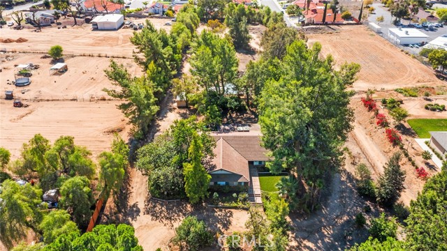 Experience "Country Living in the City" with this exceptional 2½-acre ranch-style property, perfectly positioned on a sprawling, tree-studded lot. The charming single-story home features 4 bedrooms, 2½ bathrooms, and 2,157 sq. ft. of comfortable living space. The open-concept kitchen flows into the family room with its cozy wood-burning fireplace offering a perfect retreat. Step outside and discover your own private park. The grounds are adorned with dozens of mature shade trees and a flourishing orchard of fruit trees including lemon, tangerine, avocado, orange, peach, and more. The vast, usable land presents a blank canvas with unlimited potential. Imagine a sparkling new pool, a family garden, a dream workshop, or simply enjoying the breathtaking panoramic views of the hills and city lights. Prime location close to schools - literally just steps from North Ridge Elementary, near Palm Middle, and minutes to Valley View High. With a 3-car garage, a circular driveway, and ample room for RVs, boats, and work vehicles, this property effortlessly accommodates all your needs. Zoned for horses and free from HOA restrictions, it provides the ultimate freedom to create your dream lifestyle — whether you're an entrepreneur, an equestrian enthusiast, or seeking a multi-generational family home. This isn't just a home; it's a legacy property waiting for its next chapter. Don't miss this one-of-a-kind opportunity!