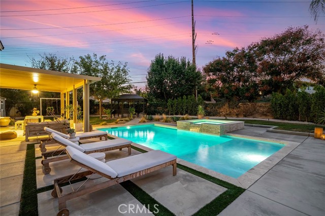 Highly upgraded pool home is priced to sell! This stunning home has been thoroughly updated inside and out and features a massive backyard with a brand-new sparkling pool and spa! And inside the home is pure eye candy, boasting new Quartz countertops throughout, luxury vinyl plank flooring, stainless steel appliances, sink fixtures, hardware, custom lighting, newer windows, paint, A/C unit, whole house fan, and more! The modernized kitchen hits all the marks, with farm sink, gorgeous warm hue Quartz countertops, and designer touches such as the chevron backsplash and soft- bronze finished hardware. From there, the kitchen connects seamlessly to the breakfast area and family room with wood-burning fireplace, creating a cozy, but open main living space. Across the hall is an updated bathroom, a bedroom, a larger formal dining area, and a light-filled, open living room, all illuminated by custom, updated light fixtures that add to the ambiance throughout. Head up the impressive staircase to a spacious loft/bonus room, perfect for a kids’ playroom, media room, or easily converted fifth bedroom. The primary bedroom offers extra flex-space and built-in storage, suitable for a home office, gym, or media room. The primary bathroom features a large soaking tub, a separate shower, and a large walk-in closet. There are two more bedrooms and a bathroom upstairs, all tastefully updated. The backyard is a dream come true where you’ll get to enjoy the SoCal sun in your new pool and spa with top-of-the-line ozone filtering, a large Alumawood-covered patio for lounging and dining under the shade, a large and super useful Tuff Shed, custom outdoor lighting, water-efficient landscaping, and, to top it off, no rear neighbors, culminating in the perfect outdoor living space! The oversized three-car garage includes built-in storage, epoxy-coated floors, and a soft-water system. Come live your best life and enjoy low taxes and no HOA, just a short drive to Historic Old Town Murrieta, top schools like Cole Canyon Elementary, excellent restaurants, hospitals, and shopping. All of this is set against the natural backdrop of the Murrieta foothills and Santa Rosa Plateau Ecological Reserve, while conveniently located near the 15 Freeway and the famous Temecula Wine Country.