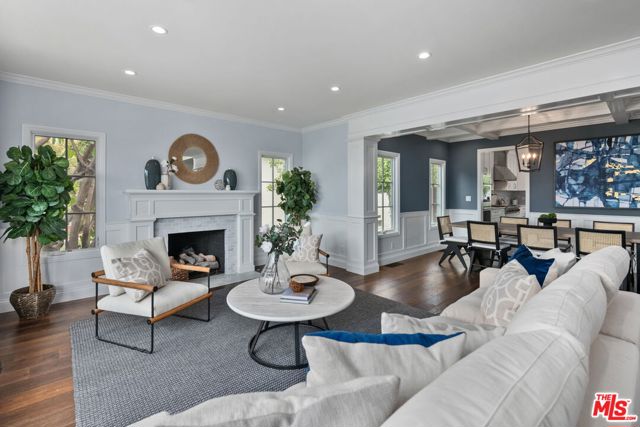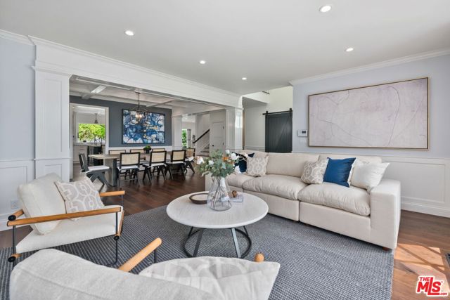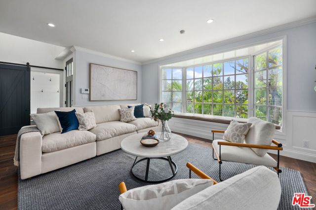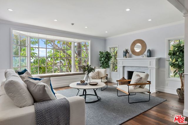 Gorgeous Custom 5 bed/4.5 bath Cape Cod Style Traditional 2-story in Beverlywood with spectacular views and delightful, oversized entertainer's backyard with pool and spa. Set privately off the street with treetop and city views, this lovely home is filled with natural light, high-end finishes, abundant storage and custom architectural details throughout. The home is designed for luxury family living and upscale entertaining. The entry features a two-story open ceiling and a charming, well-appointed mud room with barn door closure. The home's ideal, open floor plan includes a spacious living room with wainscoting, fireplace, large bay window with ample cushioned seating with city views, and an elegant powder room tucked away nearby. Formal dining room with exquisite coffered ceiling opens to sun-filled gourmet Kosher kitchen with large center island that offers generous breakfast seating for the whole family, stainless steel appliances including 8-burner Wolf range with built-in griddle and grill, over-range pot-filler faucet, high-capacity externally-vented Wolf hood, double ovens, a wine fridge, built-in under counter microwave, 2 sinks, marble countertops, pantry cabinets with pull out drawers and unique serving window over sink that opens the kitchen to an outside counter/bar adjacent to the outdoor BBQ. Kitchen opens to family room with 4-panel bi-fold doors that create an open, indoor/outdoor living space perfect for hosting intimate and larger-scale gatherings, with built-in barbecue and pergola-covered patio, and a backyard oasis with privately landscaped mature trees framing the pool/spa. Downstairs includes 2 bedrooms, one with en-suite beautifully updated 3/4 bathroom and large patio with tree-top views, and the 5th bedroom with backyard access and 3/4 bathroom just outside the bedroom, ideal as well for a home office. Upstairs 3 additional bedrooms, including oversized primary suite with fireplace, bay window with built-in cushions seating and city views, 2 closets including large custom closet, covered balcony overlooking backyard and luxurious remodeled marble-finished primary bathroom with spa tub, separate shower and dual basins. 2 additional spacious bedrooms upstairs open to shared bathroom with dual basins, including one generously-sized bedroom with a front-facing balcony that boasts breathtaking expansive city views spanning from Downtown Los Angeles to Marina del Rey. Additional features found in luxury estate homes include built-in speaker system in family room ceiling and backyard, security system including custom-designed exterior security cameras with remote access, tastefully remodeled custom bathrooms, high-end fixtures and hardware, hardwood flooring, dual zoned ac/heat, graceful wainscoting, custom door casings, solid wood doors throughout for sound reduction and added privacy, built-ins, skylight, high ceilings and recessed lighting throughout. Ideal proximity to Beverly Hills shopping and retail, Century City's Westfield Mall and Downtown Culver City retail and restaurants, with easy access to freeways. Castle Heights Elementary School. Stunning home ready to move right in!