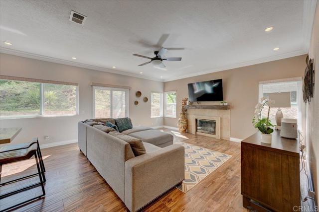 Welcome to this highly upgraded home in Rancho Del Oro! This 2787 sqft, 5 bed / 3 bath w/3 car garage features open floor plan with high ceilings and abundant natural light, creating a bright and inviting atmosphere. Very convenient with 1 bedroom downstairs. The large living room with custom tiled fireplace wall, formal dining area, and separate family room with custom fireplace finishes provide ample space for both daily living and entertaining. Spacious separate laundry room with sink and storage. No expense spared with upgrades throughout home…step into the ¼ acre lot with stunning curb appeal and herringbone steps walkway leading to entry courtyard. Your own private oasis with water feature, professional lush landscaping, lighting, and flagstone walkways. The mature palm trees add to the serene ambiance. Enjoy evenings and relaxing conversations around firepit and multiple seating areas. Inside, you will be treated to a highly upgraded kitchen with dramatic quartz countertops, a kitchen island, and SS appliances. Whether you’re cooking for family or hosting friends, this kitchen is a chef’s delight. Enhanced lighting with upgraded light fixtures and recessed lighting throughout. Large master suite with walk-in closet and custom large walk-in shower. All bathrooms have been fully upgraded. Fresh paint, custom tile floors and carpet. And the upgrade list goes on…home fully re-piped and upgraded plumbing fixtures throughout, whole house water softener, mirrored closet doors, updated windows, exterior paint, tile roof underlayment replaced, upgraded hvac. Conveniently located near schools, parks, shopping, hiking and biking trails, this beautiful home offers recreation, comfort and convenience. This home is truly move in ready!