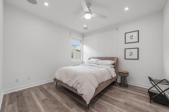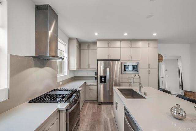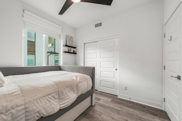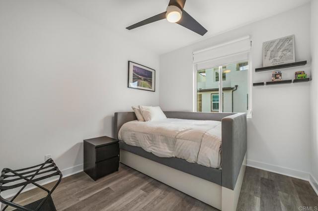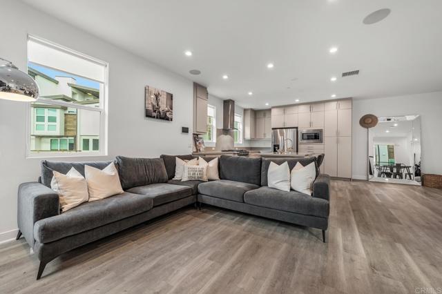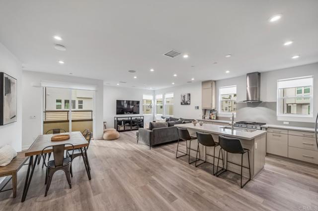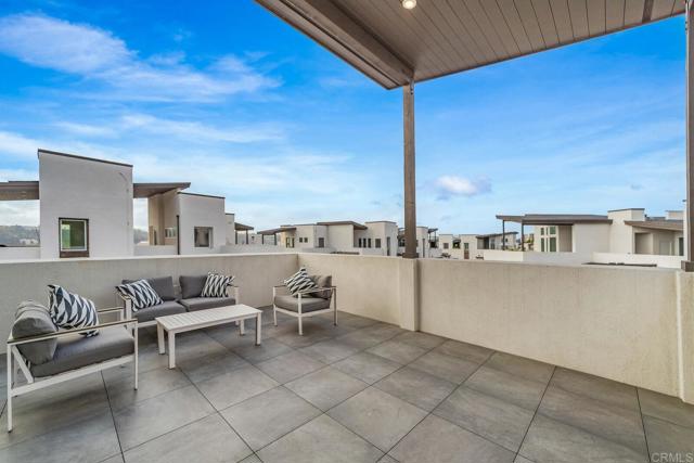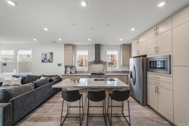 A sophisticated tri-level townhome nestled in the sought-after Avella community by Toll Brothers within the heart of Civita, Mission Valley. This contemporary residence blends upscale finishes, cutting-edge smart home features, and an unbeatable location near everything San Diego has to offer. Interior Highlights Step inside to discover an open-concept floor plan adorned with luxury engineered wood flooring throughout, creating a seamless flow between living spaces. Enjoy surround sound throughout the home, ideal for entertaining or movie nights, while ceiling fans in all bedrooms ensure year-round comfort. The blackout shades provide a serene retreat and privacy in each bedroom. The kitchen boasts stainless steel Whirlpool appliances, sleek cabinetry, and modern finishes, perfect for culinary enthusiasts. A wall-mounted smart home system and front door security camera offer convenience and peace of mind. This corner unit location floods the home with abundant natural light from multiple exposures, enhancing its bright and airy ambiance. Outdoor & Garage Features Enjoy the tile-finished balcony and rooftop deck—perfect for morning coffee or evening gatherings with panoramic views of the Civita neighborhood. The attached two-car garage includes a storage area and pre-wiring for electric vehicle charging, along with a tankless water system for efficiency. Community & Location Living in Civita means access to resort-style amenities, including a state-of-the-art recreation center, two sparkling pools, spas, fitness facilities, BBQ areas, parks, and walking trails throughout the award-winning master-planned community. Perfectly positioned in Mission Valley, Civita offers unmatched convenience—just minutes from major freeways (I-8, I-805, and SR-163), Fashion Valley and Mission Valley malls, Costco, restaurants, coffee shops, and the future Civita retail center. Downtown San Diego, beaches, and the airport are all within a short drive. Experience modern living at its finest—schedule your private tour of 2875 Avella Circle today!
