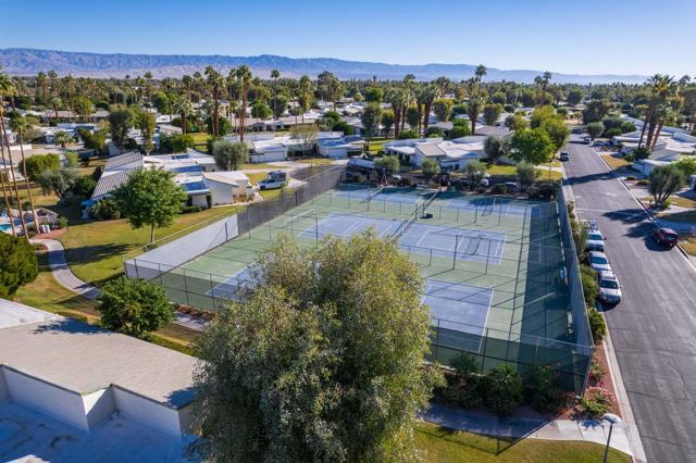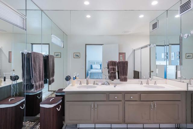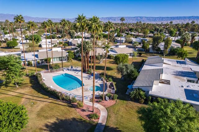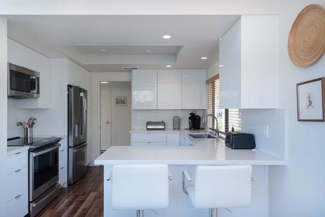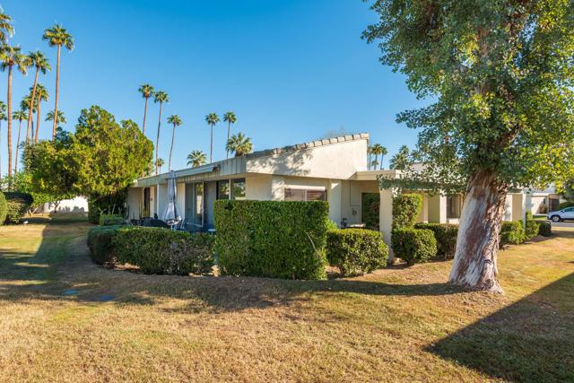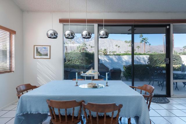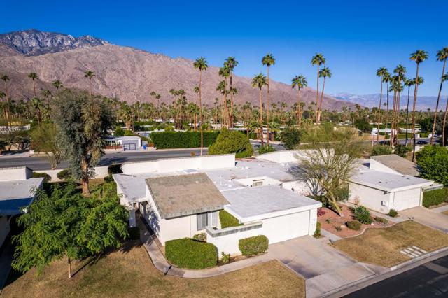 This is a lovely, light filled,FEE land home in Sunrise Villas. Originally a 3 BR with atrium, the 3rd bedroom and atrium have been converted to make a large, light filled office/flex space. The kitchen has been REMODELED BEAUTIFULLY with custom cabinetry, new counter tops and stainless appliances. The living room has tall ceilings and generous west facing windows and sliders which bring in wonderful mountain views. There is a large patio off the living room, adjacent to a large green space, with an automatic awning. The very generous primary bedroom has soaring ceilings, large closets and a refreshed ensuite bath. The home also has a large guest room with plenty of closet space as well. Rounding out the home is an interior laundry with direct access to a garage with one car parking. Sunrise Villas has many beautiful neighborhood pools and spas as well as tennis/pickleball. Association fees include cable and internet All of this is wrapped up in a very convenient South PS location. Buyers and their agents do conduct their due diligence and verify all information about the property.