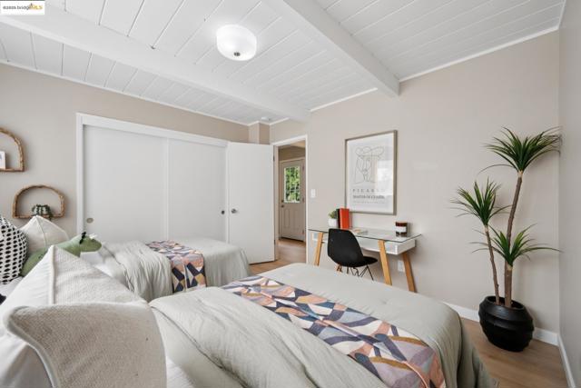 Welcome to this tastefully rehabbed home. Located in a pocket neighborhood in Lincoln Highlands. Nestled off the street with a long useful driveway, this 2 bedroom, 1 bathroom home is a light filled oasis with south, east and west sight lines. The exposed beam/tongue and groove wood ceiling throughout captures the early 60’s architectural vibe. New floors and a great overall layout. The open floorplan with banks of windows has a living, dining and kitchen all connecting in the front part of the home. A tastefully redone kitchen has new lighting, stone counters, new sink and new appliances. In the rear are two generously sized bedrooms with the primary looking out onto the backyard. The refreshed bathroom with vanity and tiles and tub is located off the hallway off the bedrooms. Access the backyard - peaceful and quiet from a door near the kitchen – ideal for quick BBQ checks as well as hosting friends and family. Overall the lot is 11,576 SQF. Lincoln Highlands is a premier Oakland neighborhood where City living meets the serenity of nature in addition to great weather! Joaquin Miller Park and Diamond Park are nearby – come and experience blissful trails, Redwood groves and fabulous views. Finally, Avenue Terrace kids park is conveniently close.