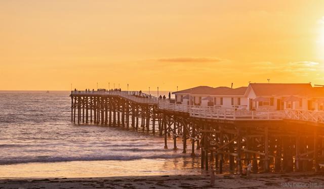 A quintessential coastal lifestyle awaits from the vantage of a second-floor residence on Pacific Beach's iconic boardwalk. Presenting awe-inspiring ocean & Crystal Pier views, this exceptional single story open floor plan features newly painted interiors, hardwood-style vinyl flooring, newer carpet in all three bedrooms, plantation shutters, and recessed lighting, all contributing to an ambiance of refined relaxation with private oceanfront patio. Anchored by the warmth of the living room fireplace, an open-plan dining area seamlessly connects to a functional kitchen, equipped with an eat-in island and pristine white cabinetry. Affording effortless access to diverse local offerings, this surfside dwelling encapsulates a harmonious blend of comfort and sophistication, emblematic of the coveted Pacific Beach lifestyle. * * * there are only four 3 bed units out of 76 residences, 1 deeded parking space conveys with 7 lottery spaces available each year upon request * * *