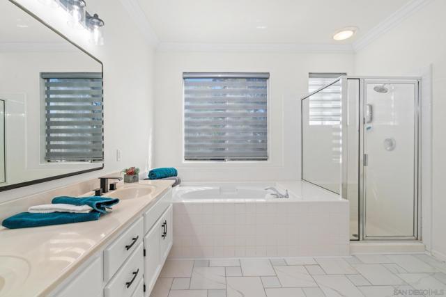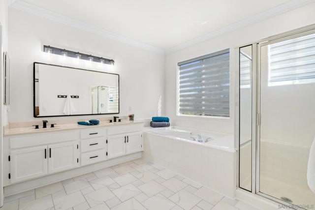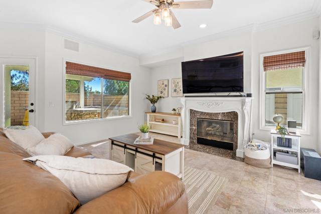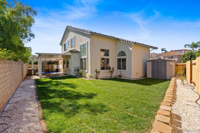 Welcome to this beautifully maintained and updated home in the Mesa Valle community of San Marcos. Freshly painted inside and out, with a crisp white kitchen and black hardware, this home features vaulted ceilings, crown molding, Pergo flooring upstairs, and marble tile on the first floor. The spacious 3-car garage plus storage offers ample space. The backyard is perfect for entertaining with a built-in BBQ island, Alumawood patio cover, grassy play area, and custom pavers. Very walkable with trails to schools & parks! Additional highlights include a tankless water heater and custom blinds. Conveniently located near top-rated schools, Palomar College, Cal State San Marcos, parks, trails, shopping, dining, and major freeways. Currently zoned for Richland Elementary, Woodland Park Middle School and Mission Hills High School.