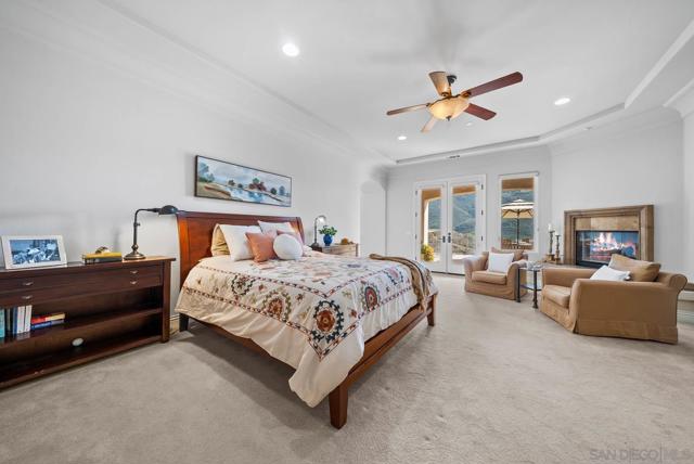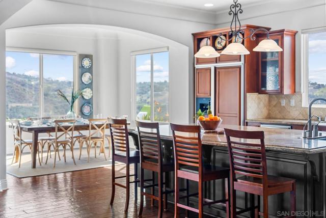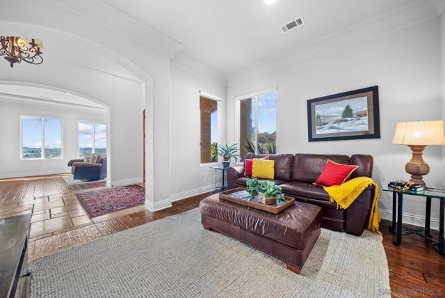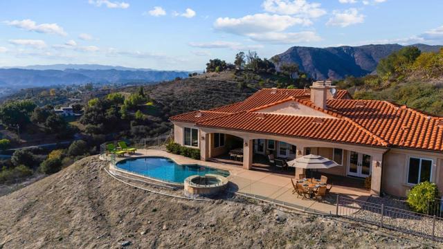 Discover your dream retreat in this stunning hilltop estate, set on 6.12 on acres with panoramic views and breathtaking sunsets. Privacy and security are paramount with a private gated entry, creating a serene haven surrounded by nature. This single-level, custom-built home showcases exceptional craftsmanship with an impressive rotunda entry, soaring ceilings, and elegant arched doorways.Throughout the home, you'll find gorgeous distressed hardwood plank floors and solid alder hardwood doors, adding warmth and character. The expansive great room floor plan seamlessly blends indoor-outdoor living, with walls of glass and French doors that maximize natural light and views. These doors open to a covered outdoor living room with a fireplace, perfect for entertaining or relaxing. Just beyond, the sparkling infinity pool invites you to unwind while taking in the unparalleled views, gentle breezes, and stunning sunsets. The chef’s kitchen is a culinary masterpiece, featuring a large granite island, stainless steel appliances, double dishwashers, built-in refrigerator/freezer, wine fridge, and a 6-burner gas stove. Entertain effortlessly in the elegant formal dining room with a cozy fireplace, currently being used as a study. Each bedroom is a private suite with its own bath, while the luxurious master retreat offers a fireplace, spa tub, enormous room size walk-in closet, and private patio access. Enjoy the bounty of up to 100 avocado trees and explore the expansive nature preserve with its network of hiking trails. Located just minutes from the I-15 corridor, with no HOA fees, this property perfectly balances seclusion and convenience. Don’t miss the opportunity to own this extraordinary estate—where luxury, privacy, security, and nature come together seamlessly. Don't miss the stunning video.