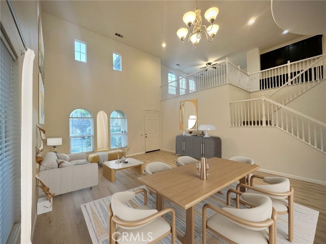 Beautiful executive home with tons of natural light and high ceilings giving you lots of room to decorate to your style! Enter and you'll find a very spacious living room/dining room combination with brand new neutral-colored LVP flooring. Take a look up and you can enjoy the view of the "Romeo" balcony upstairs. The kitchen features a large center island, granite countertops, a large walk-in pantry, and a desk area off to the side with special organization cabinets and cubby slots. The family room has a fireplace and a large alcove for your entertainment center. Downstairs features a Bedroom and full Bath, plus a very large laundry room with sink and a special storage closet under the stairs. Upstairs you'll find more storage, a huge loft, a special nook, 2 guest bedrooms plus the large Primary Bedroom and Bath. No fighting over closet space here... you'll find two separate large walk-in closets! The back yard is spacious with plenty of room to entertain. Corner lot is great for privacy. Top-rated schools as the home is located in the highly sought-after Great Oak High School territory. Temecula features so many beautiful parks and city amenities for residents. Plus, easy access to the freeway and wine country!