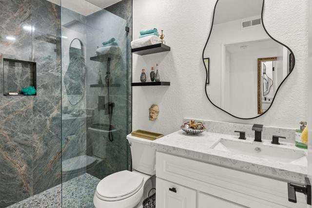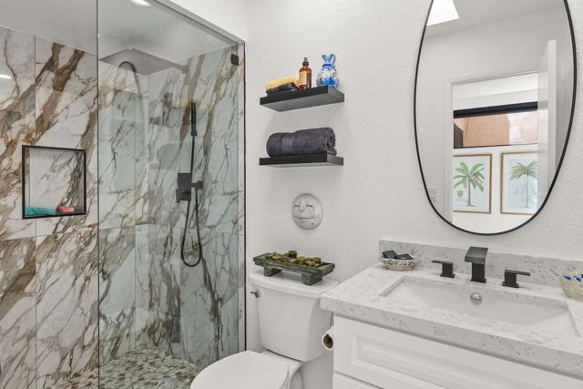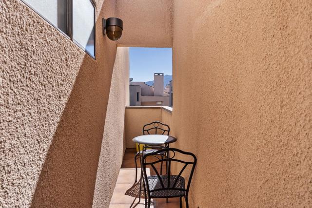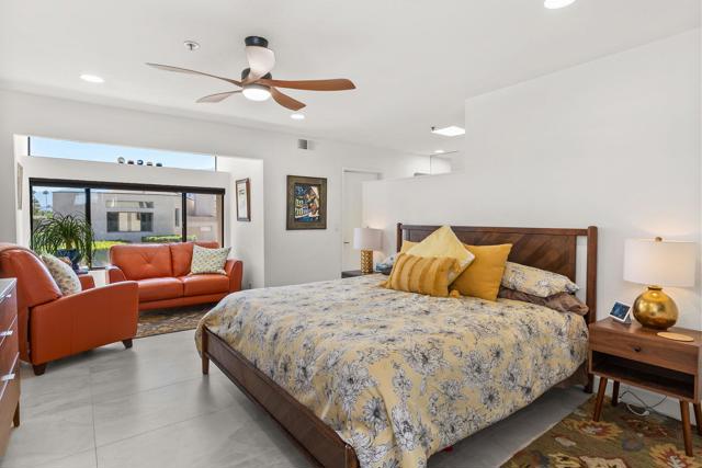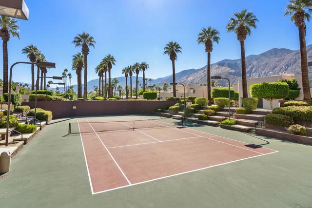 This light-filled, open, and airy multi-level townhome, located in the gated community of Village Racquet Club, has been completely renovated with style and sophistication. Situated in the heart of Palm Springs, it's just minutes away from all the shopping, dining, gaming, and nightlife of downtown. The townhome offers convenient access to major thoroughfares, making it easy to explore everything the Coachella Valley has to offer.The living area level features massive vaulted ceilings, a fireplace, and clearstory windows, creating an impressive volume and natural sunlight. A new wet bar adds to the living space's appeal. The attached balcony provides seamless indoor-outdoor living, with a tropical-like canopy and mountain views to the northwest. Throughout the year, breathtaking sunsets can be enjoyed from this balcony.The upstairs primary suite boasts large open spaces, a reading nook, dual vanities, and a walk-in closet. The ground level features a sleek kitchen equipped with Wi-Fi-enabled appliances, a Thermador 36-inch range, modern cabinetry, and granite slab countertops and full backsplashes. A dining area leads out to a patio, perfect for grilling and dining al fresco.Village Racquet Club offers a range of amenities, including eight pools, spas, tennis, pickleball, racquetball, a fitness center, and a clubhouse. An attached covered space and a large single-car garage with SUV-size parking, a backup refrigerator, a laundry area, and ample storage complete this home.