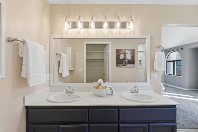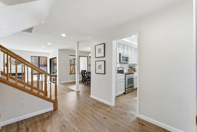 Welcome to 2354 Leptis Circle, a beautifully updated corner-unit Townhouse in Morgan Hills desirable Morgan Village community. This rare home lives like a single-family residence, offering its own driveway, private yard, and attached two-car garage. Inside, youll find 2 bedrooms, 2.5 bathrooms plus a dedicated office/den conveniently located off the kitchen, ideal for remote work or a guest retreat. The open-concept design features soaring ceilings, recessed lighting, central air conditioning, and abundant natural light that enhances the warm, inviting feel. The spacious living room centers around a cozy fireplace, while the dining area flows effortlessly into the kitchen, perfect for entertaining. Upstairs, both bedrooms include their own attached bathrooms, providing exceptional privacy for guests, rental flexibility, or multi-generational living. Enjoy outdoor relaxation on the fenced patio or explore the communitys resort-style amenities, including multiple swimming pools, tennis courts, and lush greenbelts, all just minutes from downtown Morgan Hills charming shops, dining, and easy freeway access.