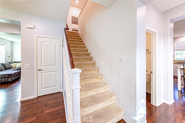 Priced to Sell! Welcome to Stunning West Creek Home in the Heart of Valencia. This beautifully upgraded 3-bedroom, 2.5-bathroom residence nestled in the highly desirable West Creek community of Valencia. This home offers both privacy and comfort with a bright, open floor plan that’s perfect for modern living. Step inside to discover rich hardwood flooring throughout downstairs, recessed lighting and double-pane windows that flood the space with natural light. The spacious living room with wall cabinets attached flows seamlessly into the dining area—ideal for entertaining. The gourmet kitchen is a chef’s dream, featuring a granite countertop, white shaker cabinetry, stainless steel appliances, and a sleek under-mount stainless steel sink. Upstairs, the expansive primary suite offers a true retreat with a generous walk-in closet and a luxurious bathroom complete with quartz stone counter top, shower, and dual vanities. The additional bedrooms with its own closets are spacious and well-appointed. Enjoy California living in your private side yard. The attached two-car garage offers side-by-side parking and direct home access. Leased solar panels on roof are a bonus! Residents of West Creek enjoy resort-style amenities including a sparkling community pool and spa, clubhouse, playgrounds, and scenic parks. Don’t miss your chance to own this exceptional Valencia gem—homes like this don’t last long. Schedule your tour today!