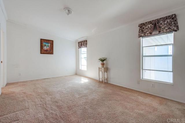 RENT CONTROL! Manufactured Home in the highly desirable 55+senior community of Rancho San Luis Rey. Very low monthly space rent of $563. 2br 2ba. 1344sqf. The spacious kitchen comes with all the appliances and has an abundance of counter space and storage areas. Microwave and stove need replacement. Newer refrigerator and dishwasher. The adjacent area off the kitchen could be a formal dining room, office area, or additional living area. Tall ceilings. Cream colored carpet throughout. The windows throughout are double-pane. There is a fireplace in the den which is perfect for an office or guest room. Primary bathroom has step in shower. The second full bathroom has tub/shower combo. The entire home is all drywall but needs interior painting. Central AC. Composition Roof. Washer and Dryer remain. Delightful front porch. Seller may carry depending on offer. 2 small pets welcome. Park is level and easy to walk around and ride bikes. LOTS of FUN Activities and great neighborhood camaraderie. 2 pools. 2 clubhouses. 2 kitchens. Parties. Potlucks. Card rooms. Billiards. Crafts. Pickleball, Exercise Classes. Karaoke. Just outside the entrance of the park are grocery stores, banks, Starbucks, lots of restaurants, Walgreens, Post Office, library, Oceanside Police Station. Located about 4 miles from the ocean, harbor, charming pier, farmers markets, beach walks, street fairs, theaters, etc.