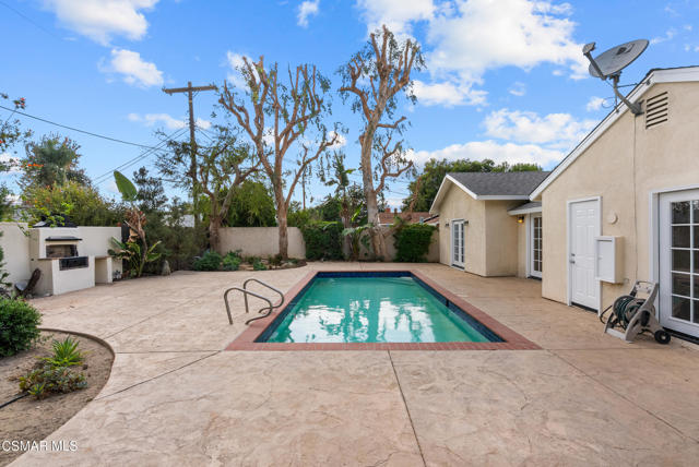 Welcome to this move-in-ready single-story gem located in a charming Northridge neighborhood near CSUN, Northridge Fashion Center, and popular local restaurants such as Wood Ranch BBQ, Yard House, and Szechuan Palace.Offering 3 bedrooms and 2 bathrooms across approximately 1,527 sq. ft., this beautifully maintained home blends comfort, functionality, and classic California living.Step inside to a semi-open floor plan featuring travertine flooring in the living and dining areas, hardwood floors in the bedrooms, and tile flooring in the bathrooms. A skylight in the living room fills the home with natural light, while the kitchen showcases granite countertops, generous cabinetry, and plenty of storage for the home chef. A separate laundry room adds convenience and extra storage space, completing the thoughtful interior layout.Enjoy warm Southern California days in your private backyard with a sparkling pool -- perfect for entertaining or relaxing. The front yard's lush landscaping enhances curb appeal, while the low-maintenance backyard ensures easy upkeep.Conveniently located close to schools, parks, shopping, and dining, this property offers an exceptional blend of style, comfort, and convenience in one of Northridge's most desirable areas. Covered carport parking adds to the home's everyday practicality. Come see it today!