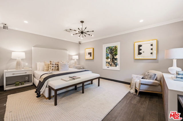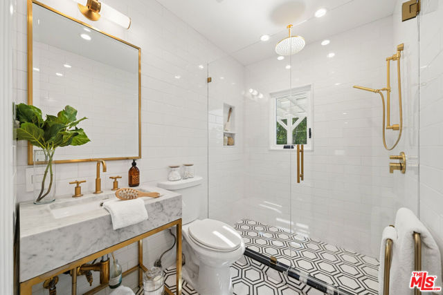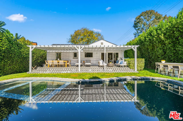 Nestled in Studio City's highly coveted Beeman Park neighborhood on a corner lot, this fully remodeled 3 bedroom, 2.5 bathroom residence seamlessly blends refined European craftsmanship with modern California living. Every detail has been thoughtfully curated to reflect understated luxury, durability, and comfort.Inside, you'll find Italian wood-look porcelain flooring throughout the bedrooms offering the warmth of wood with the lasting strength of porcelain. The chef's kitchen features a striking marble island and matching marble countertops, complemented by custom Pella windows installed by Pella-certified professionals to ensure top-tier precision and energy efficiency.The primary suite is a true retreat, showcasing Italian marble on both the bathroom floors and shower walls, Schluter waterproofing systems, and heated floors extending into the shower for spa-like indulgence. The secondary bathroom highlights a curbless shower with Bianco Carrara marble in a chevron pattern, Belgian Bluestone marble wall cladding, and a Restoration Hardware vanity again featuring Schluter waterproofing and radiant heated floors. A third designer bathroom continues the theme with a Restoration Hardware vanity, marble mosaic flooring, and classic white subway tile walls finished with the same professional Schluter shower system. Step outside to your private Italian porcelain-tiled patio, complete with a covered trellis, PebbleTec pool and spa, glass mosaic waterline tile, built-in gas BBQ and fire pit creating the perfect backdrop for effortless entertaining and year-round California living. This home represents the best of Studio City luxury, a turnkey masterpiece in the heart of Beeman Park, designed for those who appreciate quality, craftsmanship, and comfort at every turn.