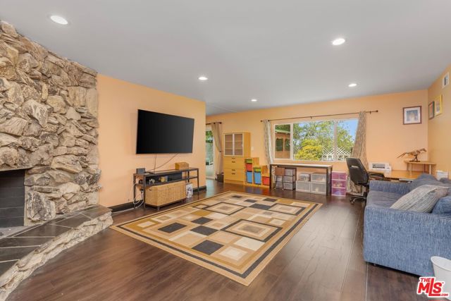 Welcome to this charming Mid-Century Modern home, set on a peaceful street in Studio City's highly sought-after "Donas" neighborhood. This single-story 3BD/4BA residence is in need of some TLC and is ready for its next owner to come in and add their touches. The inviting living room, anchored by a classic stone fireplace, flows seamlessly into the family room, which includes a brick fireplace and a built-in wet bar, perfect for entertaining. The spacious kitchen offers generous counter space, abundant cabinetry, and direct access to an attached two-car garage. Down the hall, the primary suite provides ample closet space and an en-suite bathroom with dual vanities, generous counter space, and a step-in shower. Two additional bedrooms off of the primary share a well-appointed full bathroom with both a soaking tub and shower, while two powder rooms, conveniently located off the kitchen and living room, make hosting effortless. Step through sliding glass doors to a private backyard retreat featuring a charming gazebo and sweeping Valley views. Located within the acclaimed Carpenter Community Charter School District and with easy access via Laurel Canyon to shopping and dining in Hollywood or to scenic trails in the Valley, this residence offers the perfect blend of city living and nature escape.