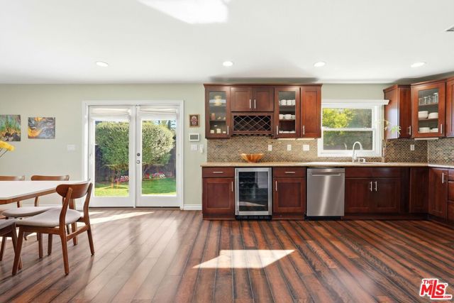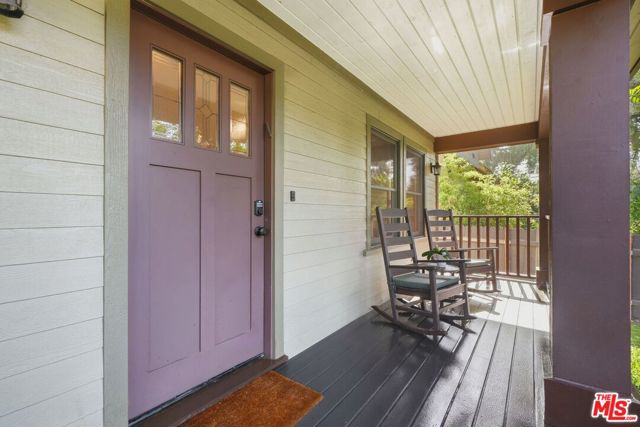 Built in 2012, this thoughtfully designed modern Craftsman home seamlessly blends timeless character with contemporary comfort. Situated within the coveted Garfield Heights Landmark Historic District, the property is framed by mature privacy hedges and a wooden gate that open to a lush front yard accented by citrus trees. A welcoming front porch leads into a spacious living room, highlighted by a stunning custom fireplace surrounded with American walnut and handmade tile detailing. The main level features a conveniently located bedroom and full bath. The open dining area and sunlit kitchen showcase granite countertops, soft-close cabinetry and premium stainless steel appliances including a dual-fuel oven, wine cooler and new microwave and dishwasher. Upstairs offers three additional bedrooms including a generous primary suite with a walk-in closet, dual-sink vanity, and designer finishes. A full guest bath and dedicated laundry room complete the upper level. French doors open to a private backyard retreat, perfect for relaxing in the sun or dining al fresco, complete with a two-car detached garage. Additional highlights include gleaming hardwood floors, dual-pane windows, an Ecobee smart thermostat, tankless water heater, automatic sprinkler system, a newly paved driveway, and serene mountain and treetop views. A rare find, this home offers the charm and craftsmanship of Pasadena's historic neighborhoods paired with the ease and efficiency of newer construction. Situated just minutes from upscale shopping, fine dining, parks, and top-rated schools. Located just moments from Old Town Pasadena.