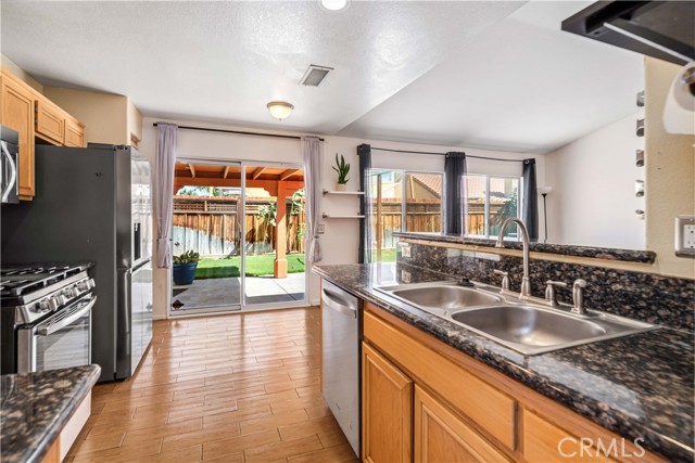 Don’t wait on this one — it’s the kind of home that just feels good the moment you walk in. Light-filled, comfortable, thoughtfully updated, and truly move-in ready. If you’ve been hoping to settle in before the holidays, you can — this home is ready for a quick close. This single-story layout has over 1,600 sq. ft. of open, inviting space with 4 bedrooms and 2 bathrooms, designed for everyday ease and effortless hosting. The kitchen is the heart of the home, with granite countertops, stainless steel appliances, and plenty of storage. It opens right into both the family room (with a cozy fireplace for movie nights) and the formal living space (perfect for gatherings). The high ceilings and laminate wood floors make everything feel bright, airy, and welcoming. The primary suite is your own calming retreat — spacious, private, and complete with a walk-in closet and a beautifully updated bathroom with dual sinks. You’ll also appreciate the indoor laundry room, updated bathrooms, and energy-saving solar system that helps keep monthly costs lower. Plus — all appliances are included, making move-in even easier. Step outside and you’ll find a backyard you’ll truly enjoy spending time in. Mature landscaping, lush planter beds, a covered patio for shaded afternoons, and a paved side yard ready for BBQs, play space, gardening, or pets. It’s peaceful, private, and easy to maintain. An attached two-car garage, upgraded fencing, and a cared-for feeling throughout complete the picture. Homes like this don’t come around often — especially ones this clean and ready to go. Come see it, feel it, and imagine making it yours.