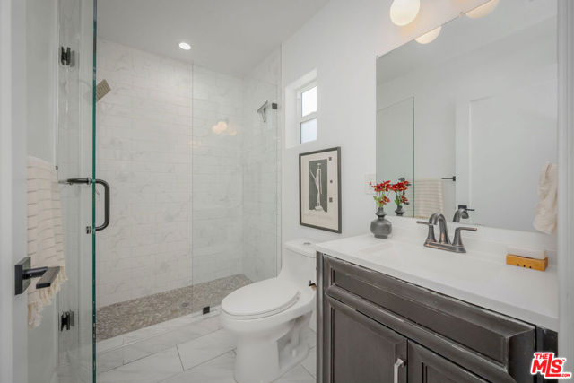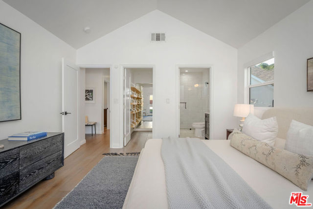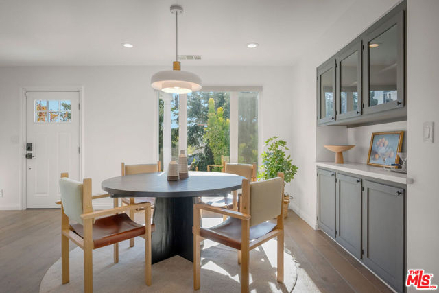 Light-filled and renovated Silver Lake bungalow with ideal floorplan and great outdoor space. Warm family and dining spaces blend seamlessly into the kitchen with center island, abundant cabinetry, stone countertops, high-end appliances, and breakfast bar seating. Two spacious bedrooms share a hall bath and lead to a brightly lit en-suite primary with high ceilings and French doors to the backyard. One car garage has been fashioned into a flexible work room/storage space. Gated driveway leads to carport for two, plus a custom-built grill station and storage space for all of your gardening and weekend warrior tools. Elevated above the street, a completely gated and fenced yard provides mature landscaping, fruit trees, and privacy hedges. Numerous smart features include a Rachio watering system, Moen water shutoff and leak detection system, and Tesla charger. Short stroll to Silver Lake Reservoir, nearby eateries such as Masa, Tacolina, Lamill Coffee, L&E Oyster Bar, and Botanica, and grocers such as Whole Foods and Sprouts.