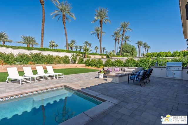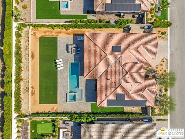 Welcome to The Province, Indian Wells' premier newest luxury gated community. Experience modern desert living at its finest in this newly built contemporary masterpiece that perfectly blends sophistication, comfort, and smart design. Set within the exclusive enclave of The Province, and situated on one of the LARGEST LOTS in the community at 13,068 Sq. ft., this stunning residence offers seamless indoor-outdoor living with an open-concept layout, refined finishes, and resort-style amenities. Inside, the expansive great room connects effortlessly to the dining area and chef's kitchen, creating an inviting space for entertaining or everyday living. The gourmet kitchen is equipped with top-of-the-line stainless steel appliances, including a Sub-Zero refrigerator and WOLF 6-burner range with double ovens, complemented by sleek European-style cabinetry and a striking Quartz waterfall countertop island. Use the convenient pass through kitchen windows for easy indoor -outdoor entertaining. Every detail has been thoughtfully considered, from the soaring ceilings, fireplace and custom plantation shutters. Property is highly upgraded, including ceramic tile floors throughout that look like wood. The home features three spacious bedrooms, each with its own private en-suite bathroom, and a custom-designed 9-foot primary closet with built-in organization. Beautiful tile flooring extends throughout for ultimate comfort and convenience. Step outside to your own private desert retreat. The backyard has been designed for effortless entertaining, featuring over 2,000 square feet of premium turf, a built-in BBQ island with rotisserie and infrared warmers, and custom landscape lighting. The spacious rear yard with room to add an ADU. The sparkling saltwater pool with tanning shelf and spa, fully controlled via smartphone or Wi-Fi make it easy to relax or entertain in style. Smart and sustainable living is at the heart of this home, with an owned solar system to provide energy efficiency and savings, tankless water heater, leak detection with automatic shut-off technology. A full fire sprinkler system adds peace of mind. Ideally located just moments from world-class golf, spas, and fine dining, and minutes from famed El Paseo the "Rodeo Drive" of the Desert this residence offers both luxury and lifestyle. As an Indian Wells resident, you'll also enjoy exclusive privileges including discounted golf and dining at the Hyatt Resort, plus complimentary access to the state-of-the-art Hyatt fitness center, shopping, entertainment and restaurants are all close by.