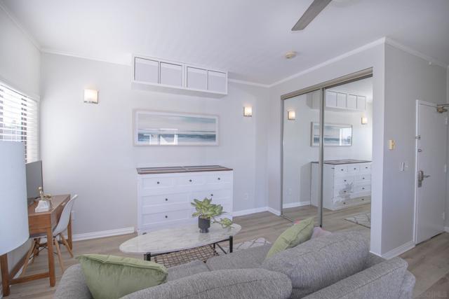 Top-floor studio located in a gated community in Golden Hill. This bright and airy unit features upgraded finishes including granite countertops, maple cabinetry, luxury vinyl flooring, and fresh interior paint. The community offers convenient elevator access, a sauna with shower, on-site laundry, bike storage, and secured underground parking with an assigned space and EV charging stations. Just minutes to Balboa Park, South Park, Downtown, local dining, and shops. Complex allows short-term rentals with a 7-day minimum, making it a great opportunity for both owners and investors. VA and CONV eligible!